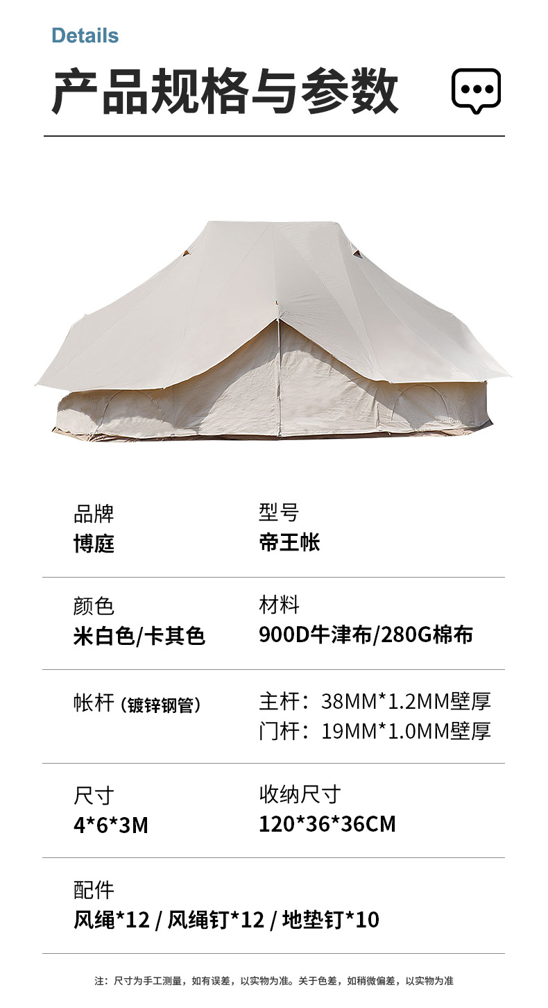 임페리얼 클락 더블탑 텐트 야외 캠핑용 면 캔버스 방염 자외선 차단 방수 두꺼운 캠프 대형 텐트스토어 가기