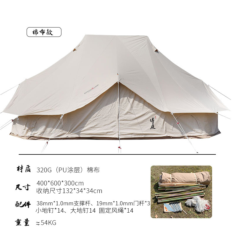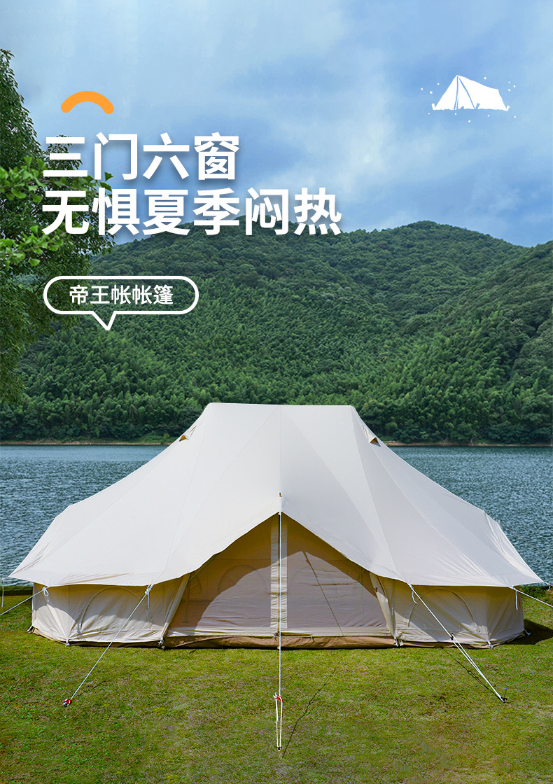 임페리얼 클락 더블탑 텐트 야외 캠핑용 면 캔버스 방염 자외선 차단 방수 두꺼운 캠프 대형 텐트