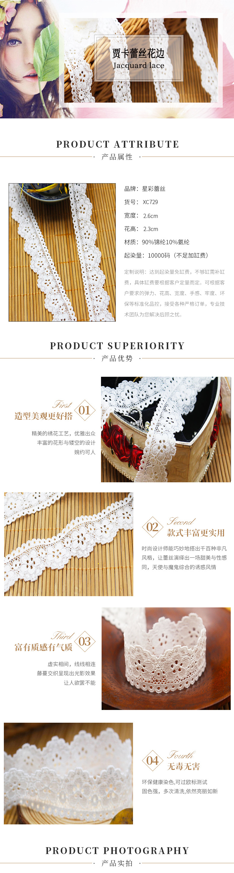 탄성 레이스 트림, 화이트 레이스 트림, 나일론-폴리아미드 경편 단일 웨이브 레이스, 의류 및 속옷용 특수 부자재 DIY스토어 가기