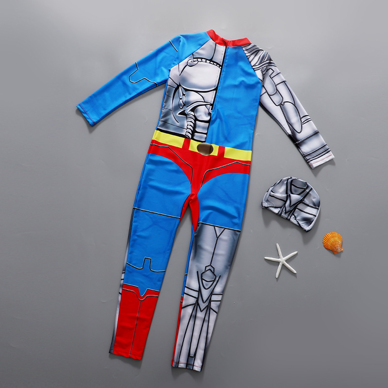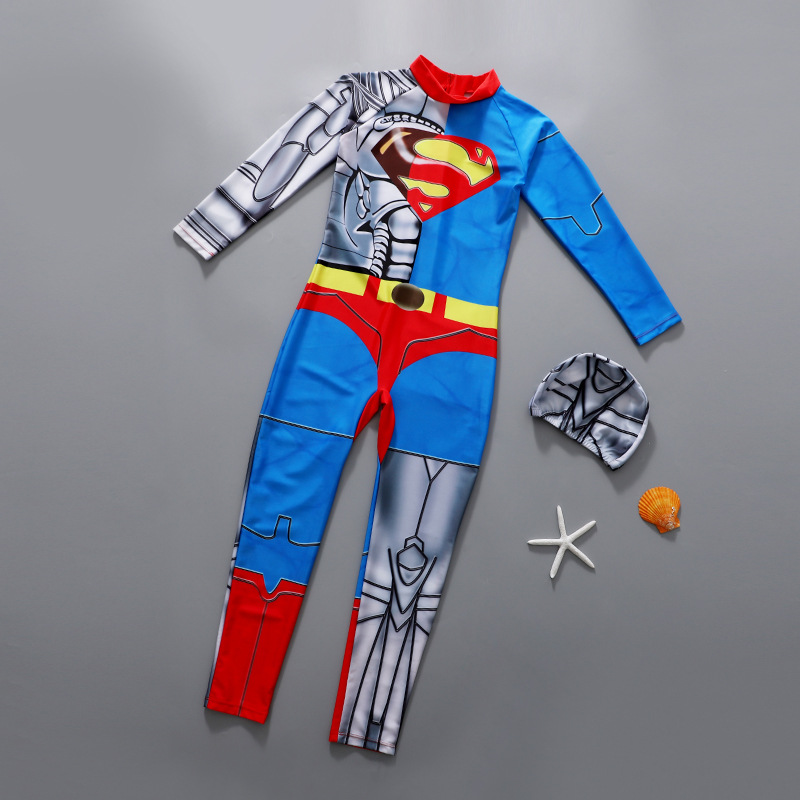 어린이 수영복 남아 대형 어린이 원피스 자외선 차단제 남아 수영복 아기 어린이 만화 귀여운 긴팔 수영복