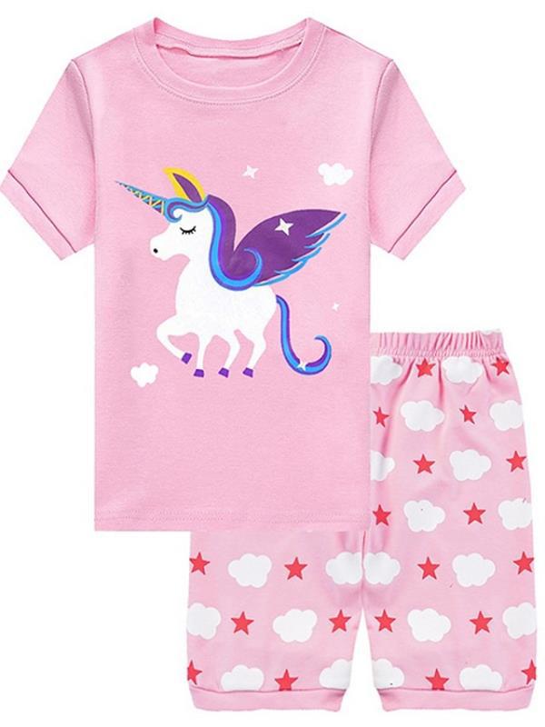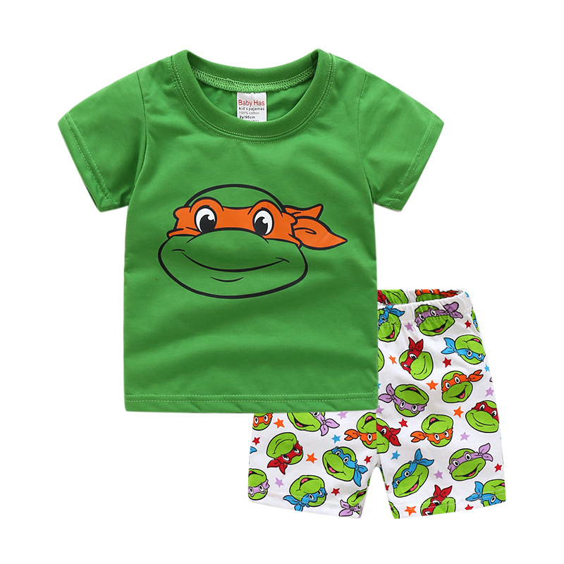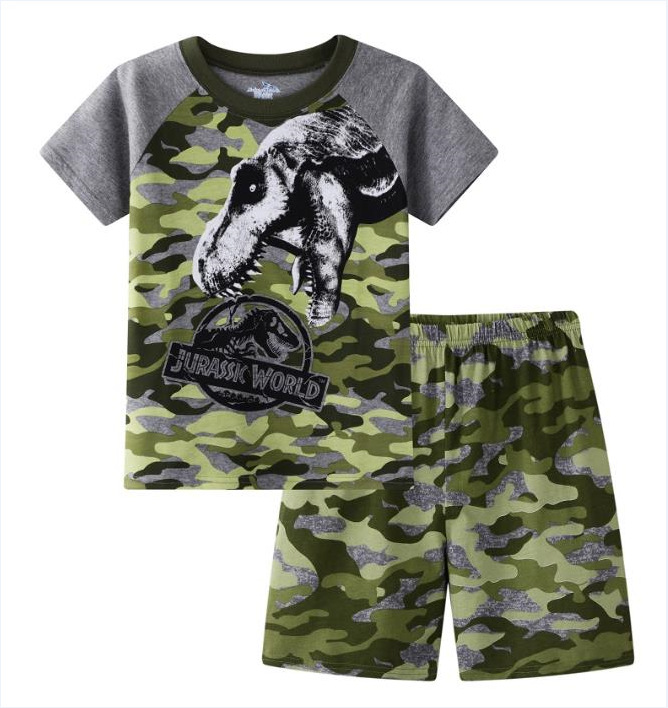 아동용 면 소재 반팔 홈웨어 세트, 남아 여름용 에어컨 옷, 잠옷, 외출복 가능