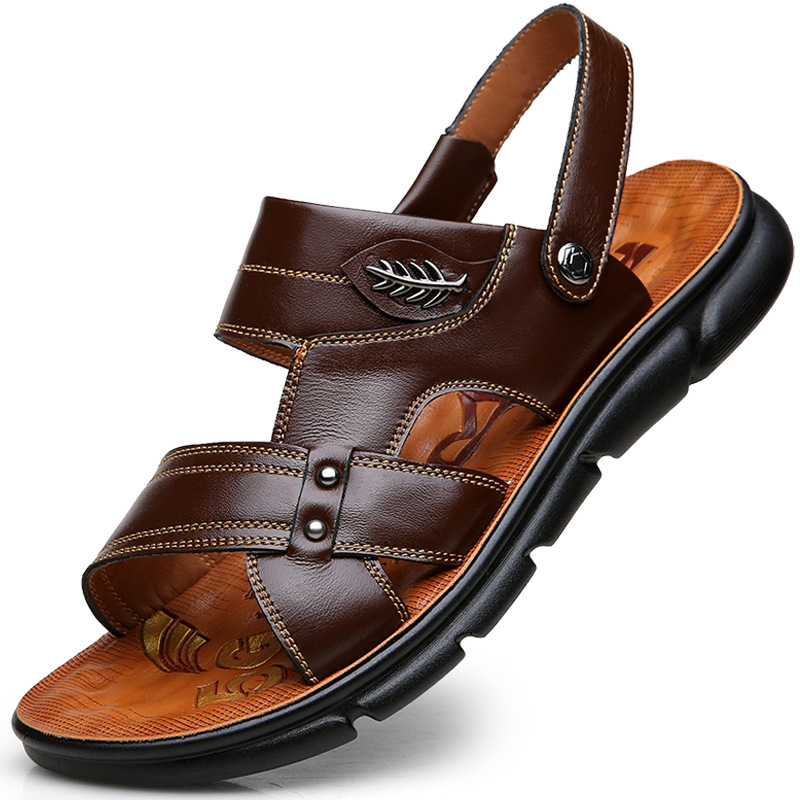 • 2021凉鞋男士真皮夏季新款包头休闲皮鞋潮流软底中年外穿男鞋批发