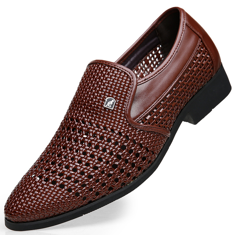 • 男士皮鞋镂空2019新款夏季正装商务洞洞男鞋真皮编织凉鞋一件代发