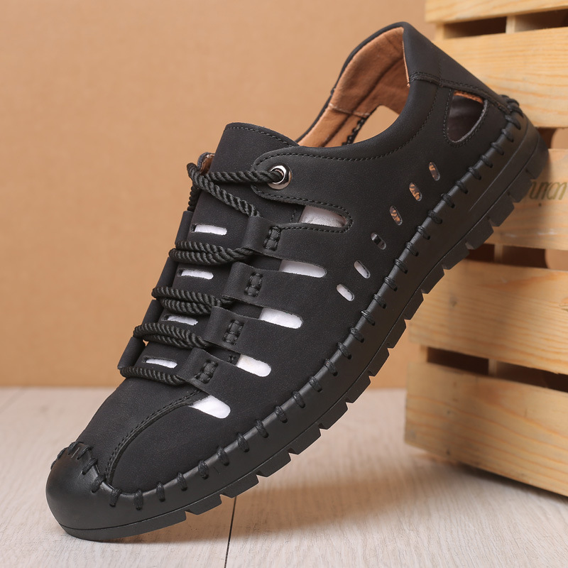 • 夏季新款凉鞋男户外休闲鞋透气镂空皮鞋男软底潮鞋洞洞鞋一件代发