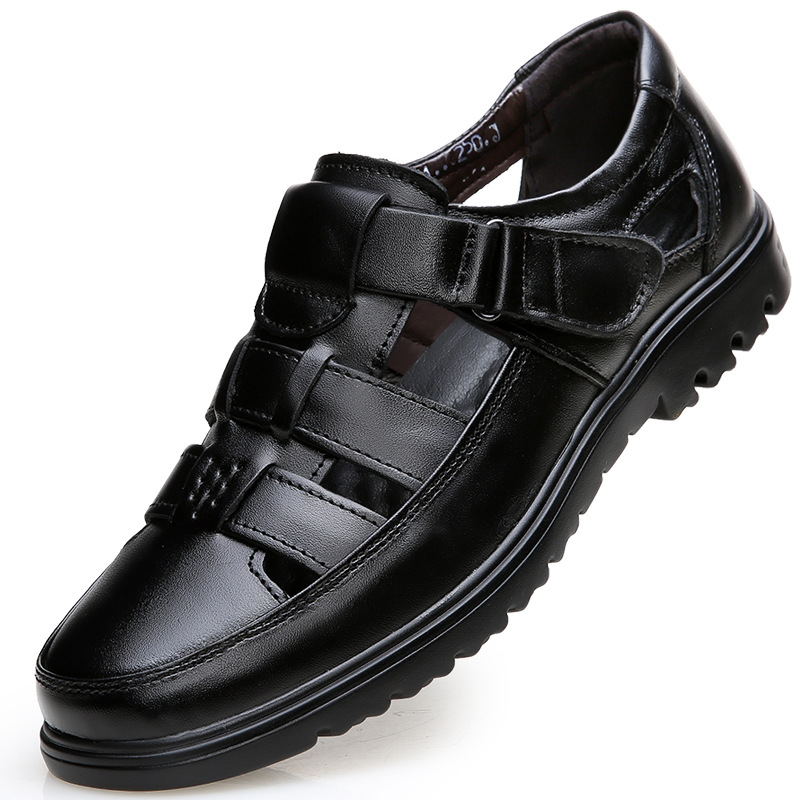 • 男士凉鞋真皮夏季透气休闲镂空皮鞋包头中老年防滑洞洞鞋一件代发