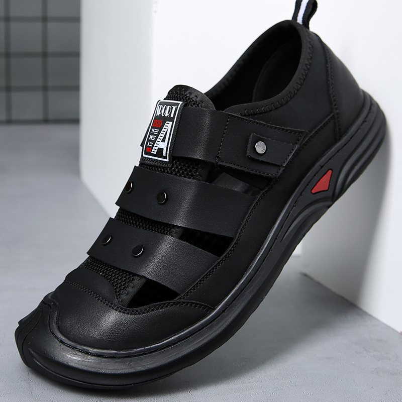 • 2022夏季凉鞋男真皮户外包头休闲鞋牛筋软底沙滩鞋男士外穿拖鞋子