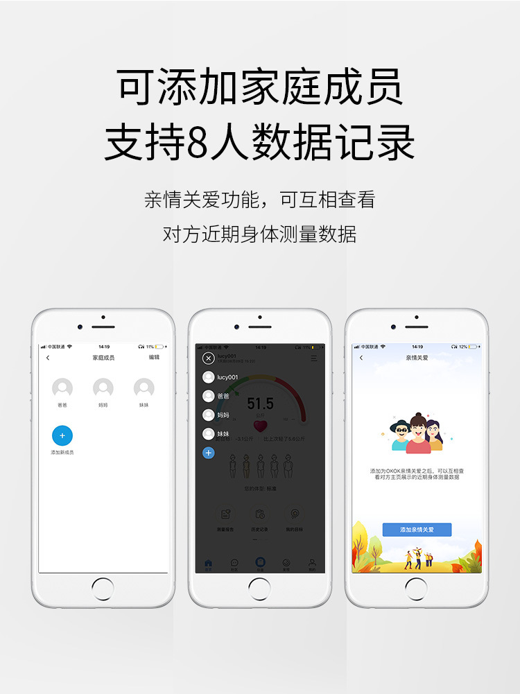 전자 체중계 체지방계 블루투스 가정용 체중계 건강계측기 신장 측정 충전식 인체 체중계 고정밀 스마트 맞춤형스토어 가기