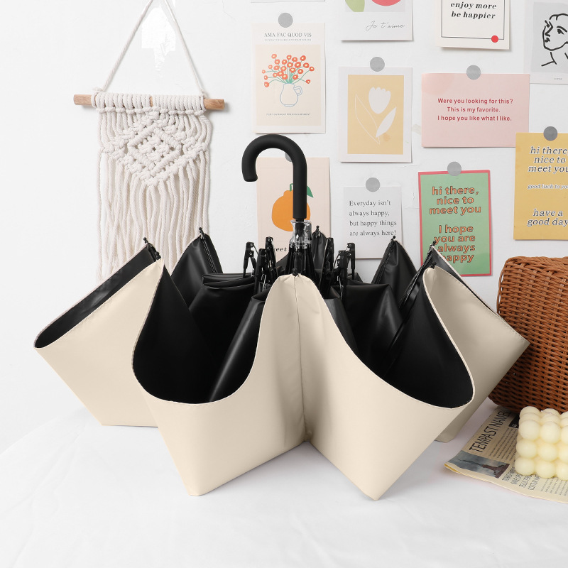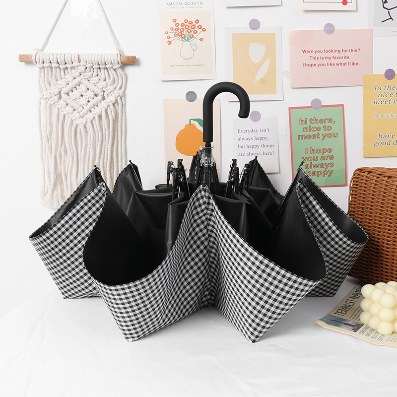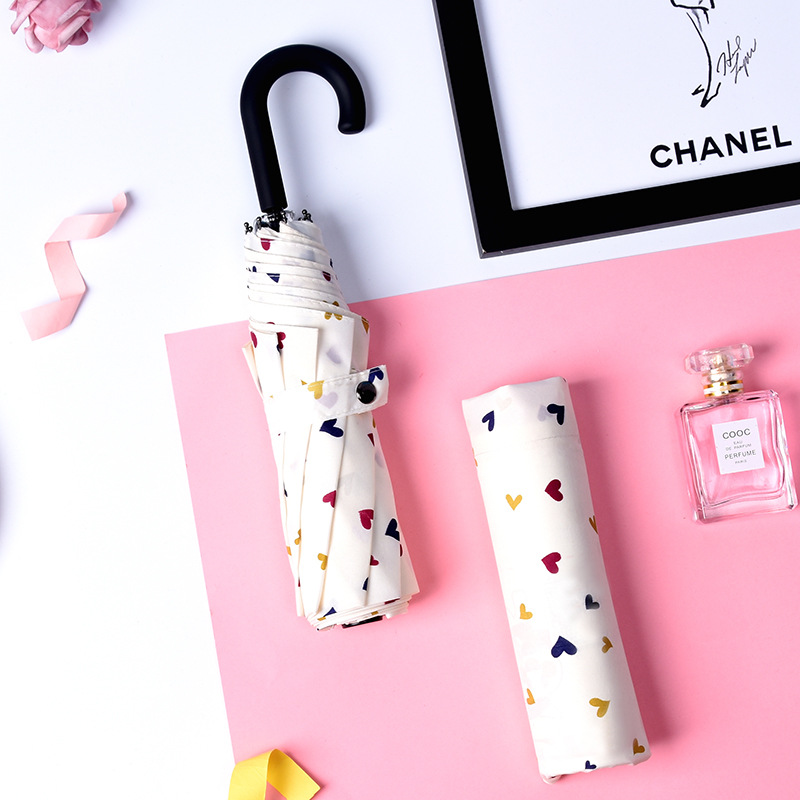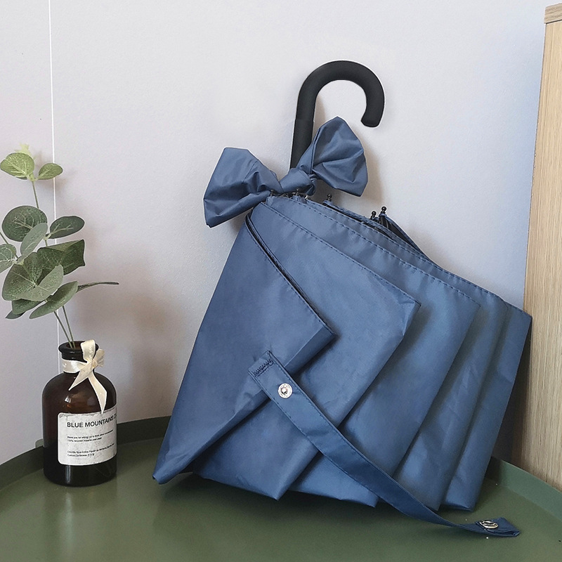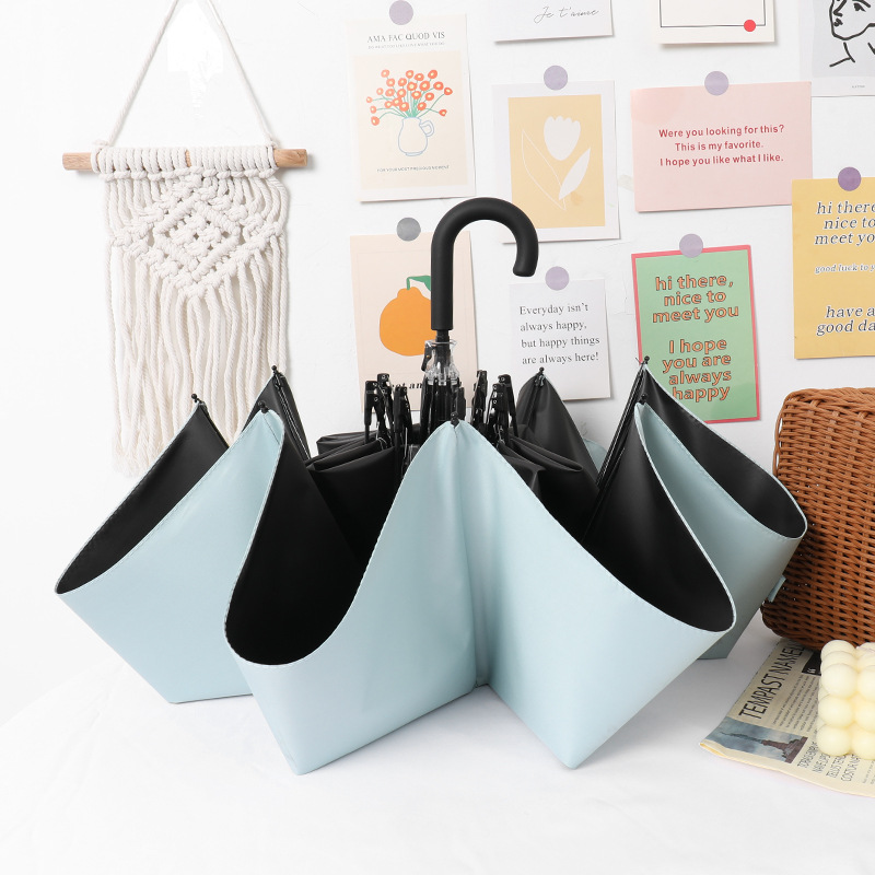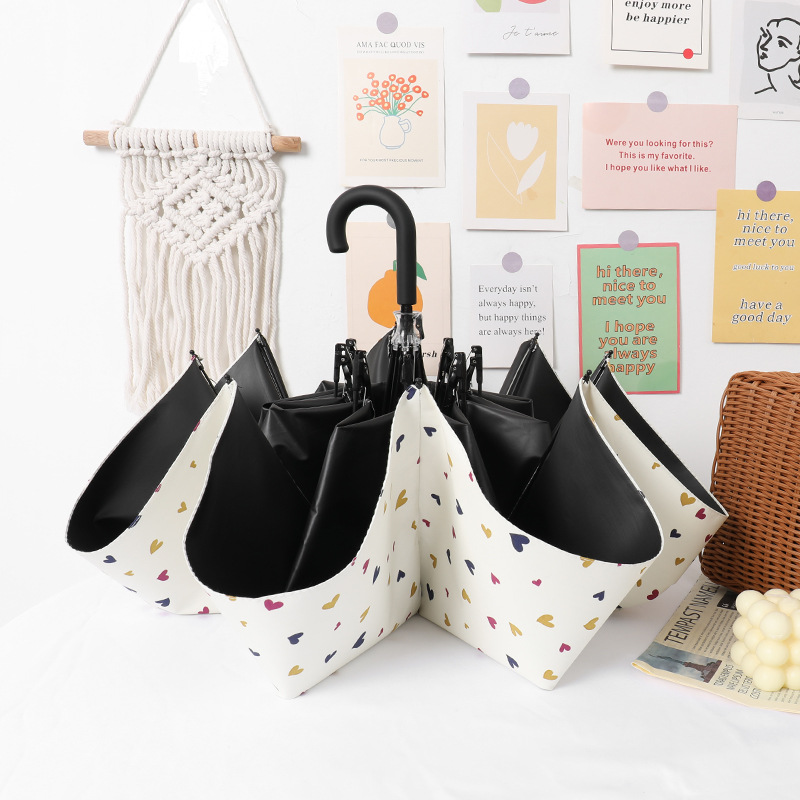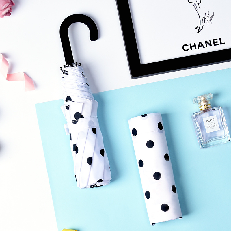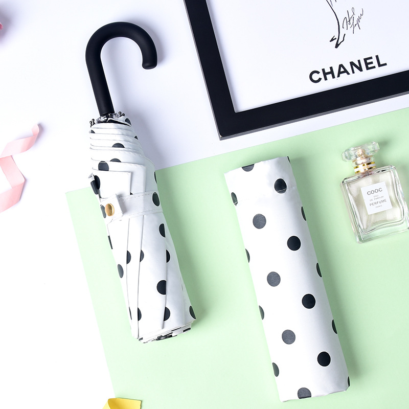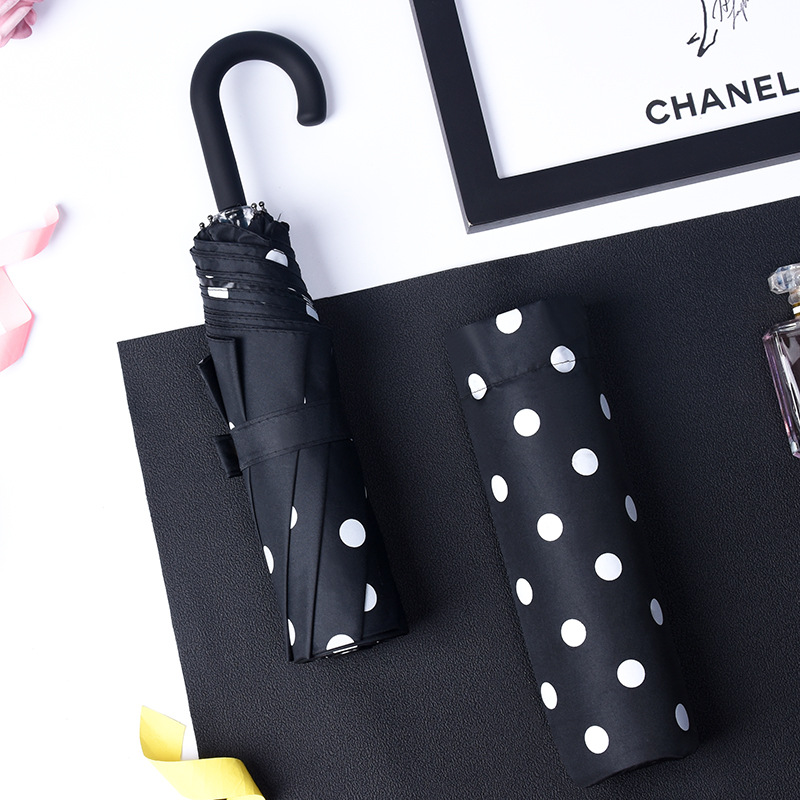 일본식 작은 신선한 웨이브 포인트 후크 접는 검은 고무 태양 우산 맑고 비 이중 사용 양산 우산 자외선 차단제 및 자외선 차단