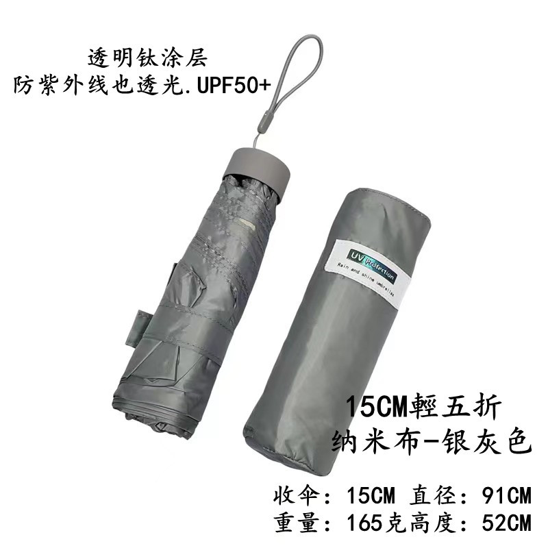 재고 고품질 일본 초단 15cm 나노 티타늄 실버 초경량 50% 포켓 우산 햇빛 햇빛 비 휴대용 소형 우산
