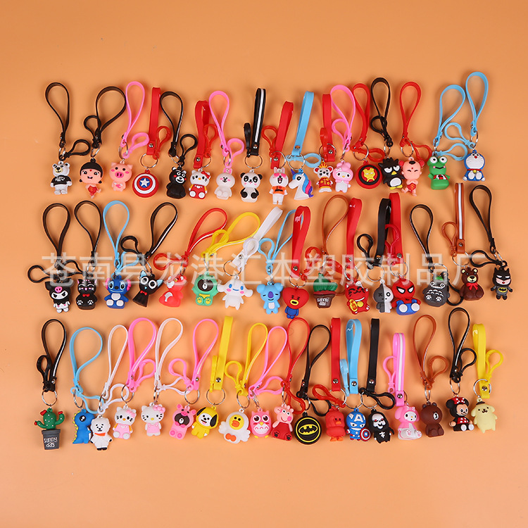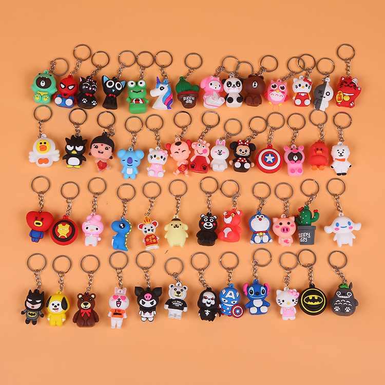 만화 PVC 부드러운 고무 입체 열쇠 고리 3D 실리콘 인형 자동차 열쇠 펜던트 학교 기념품 가죽 로프 액세서리스토어 가기