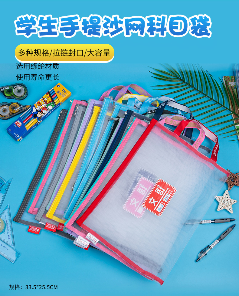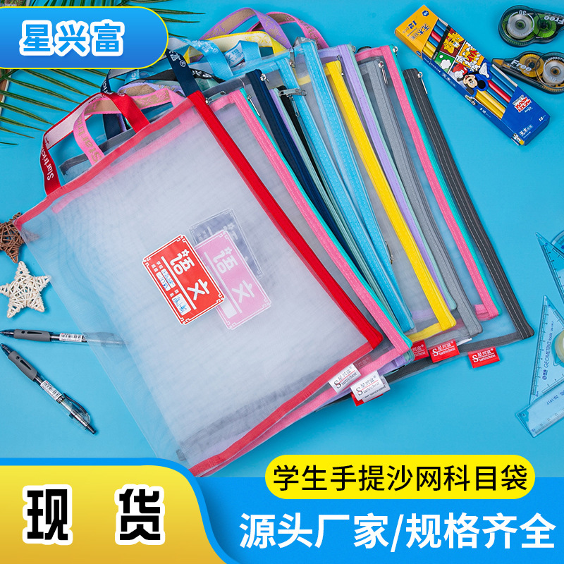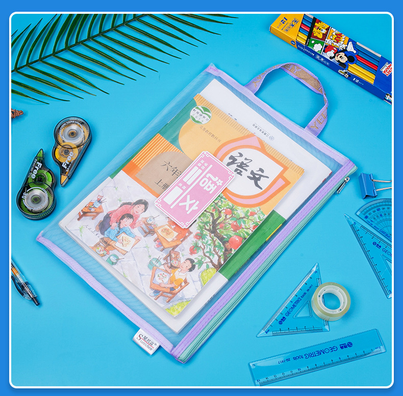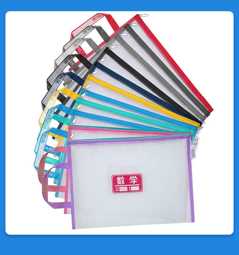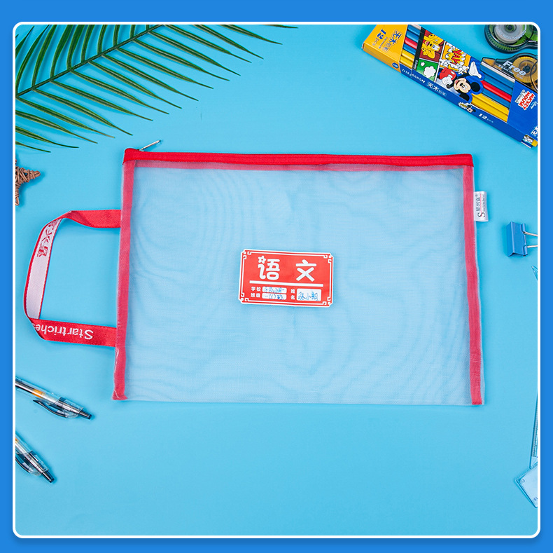 학생용 휴대용 메쉬 교과품 가방 A4 파일 가방 중국어 수학 영어 종합 분류 가방 지퍼식 가방