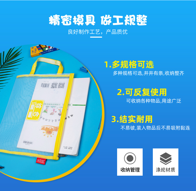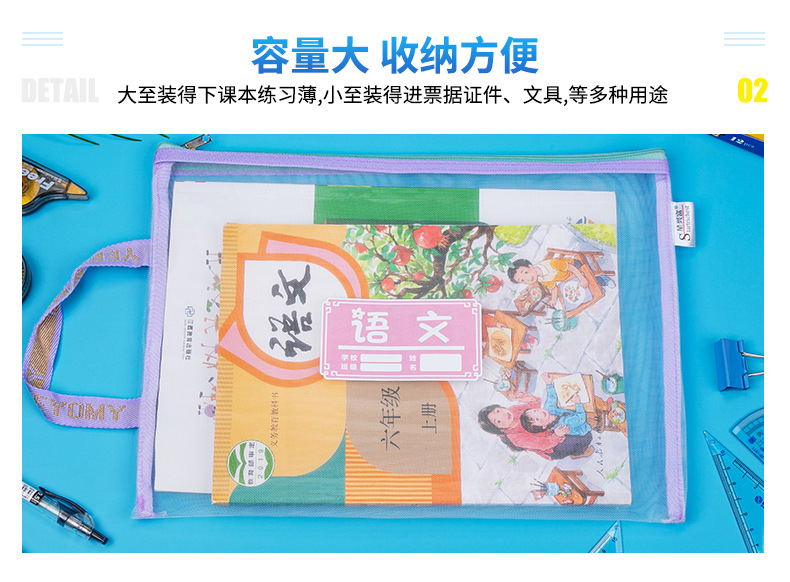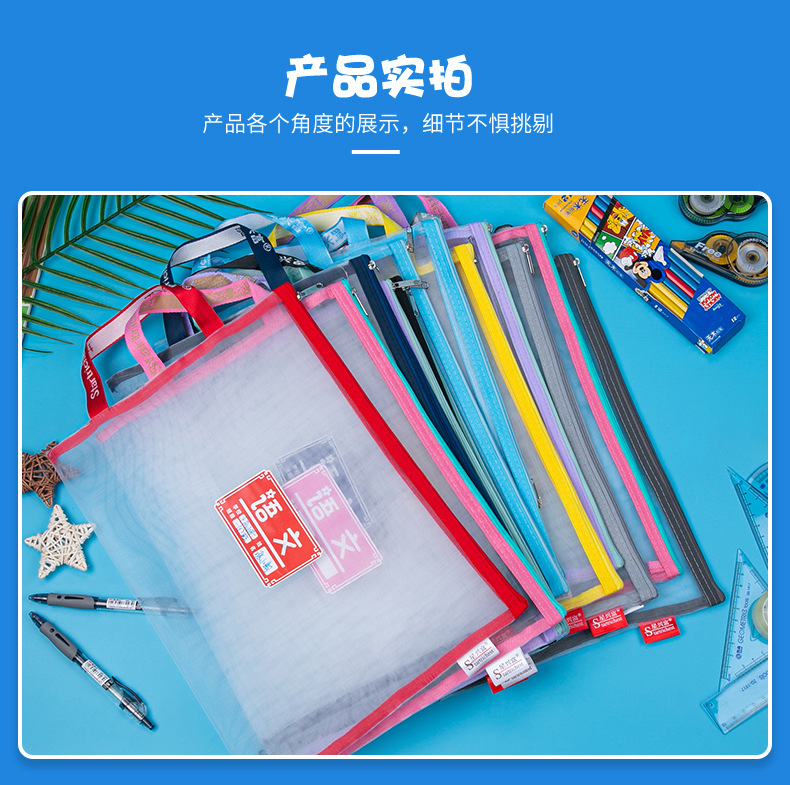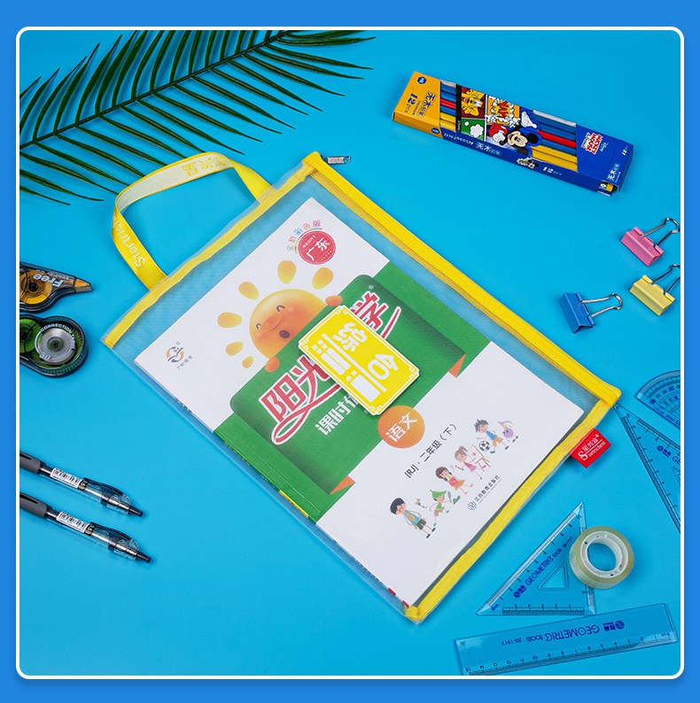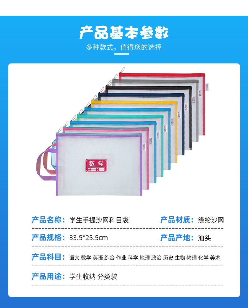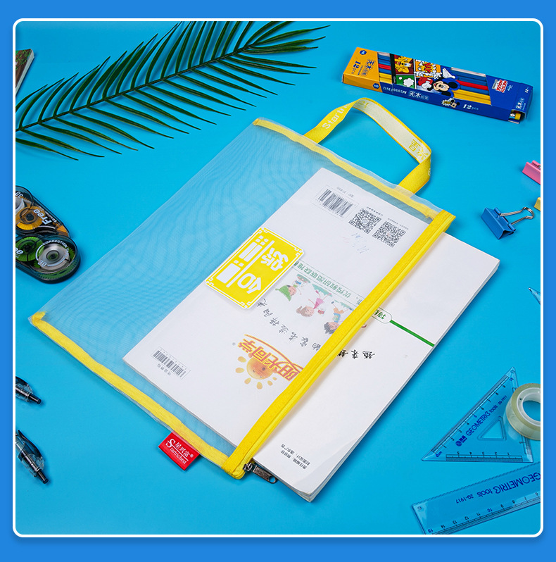 학생용 휴대용 메쉬 교과품 가방 A4 파일 가방 중국어 수학 영어 종합 분류 가방 지퍼식 가방