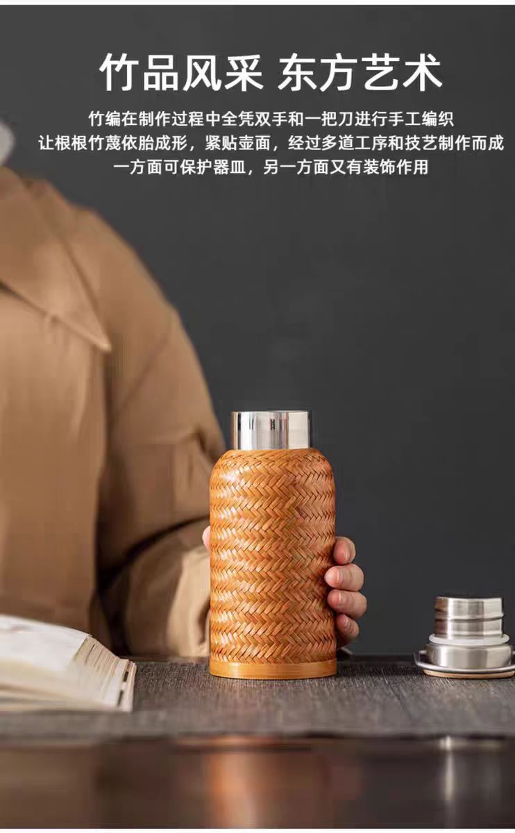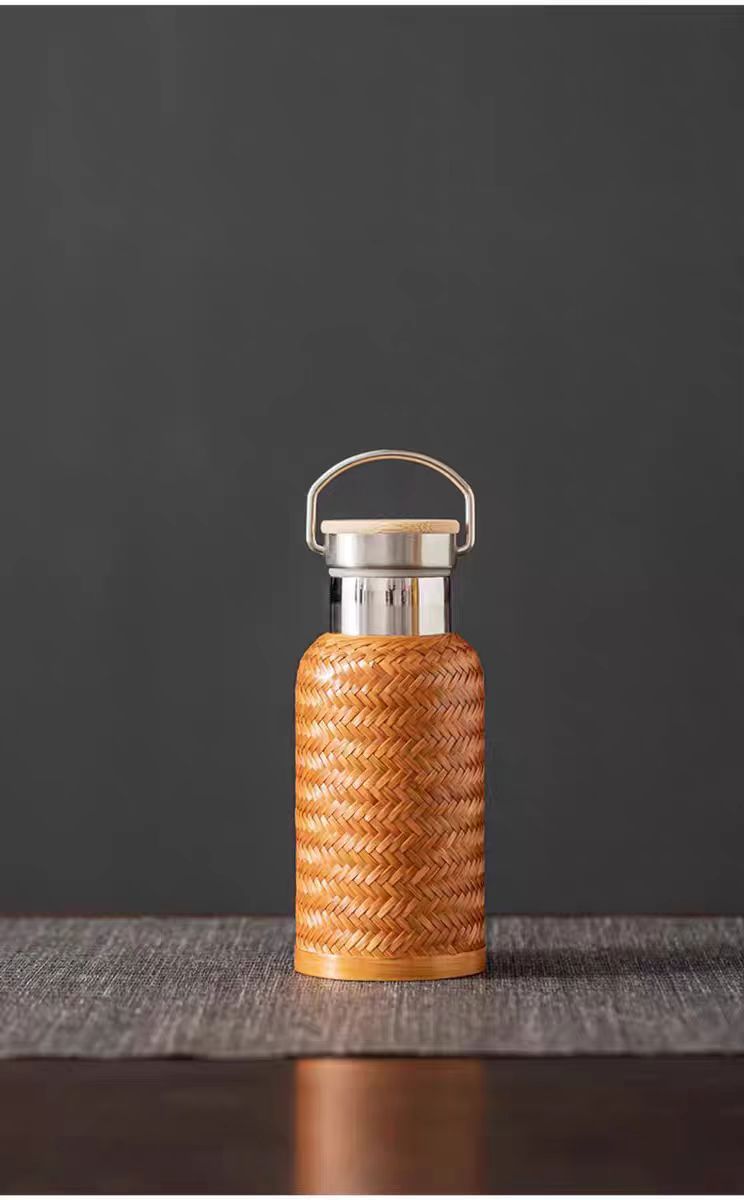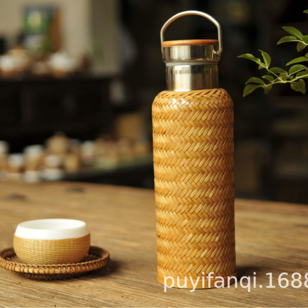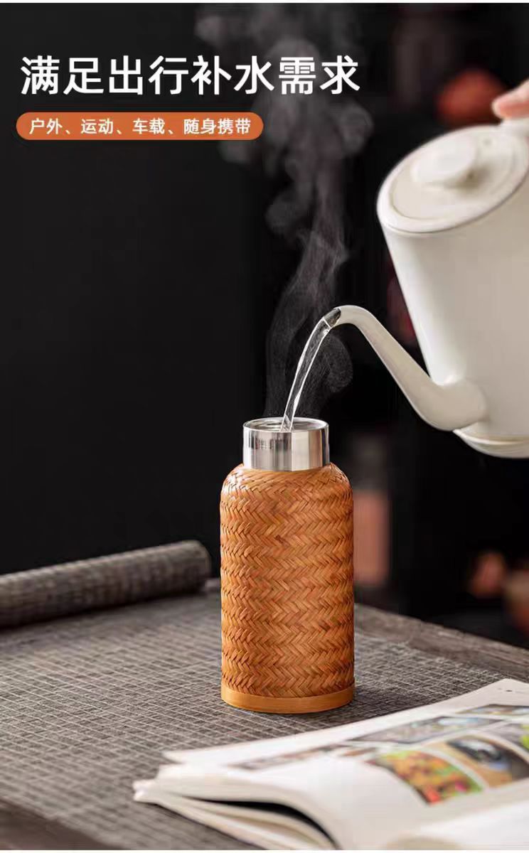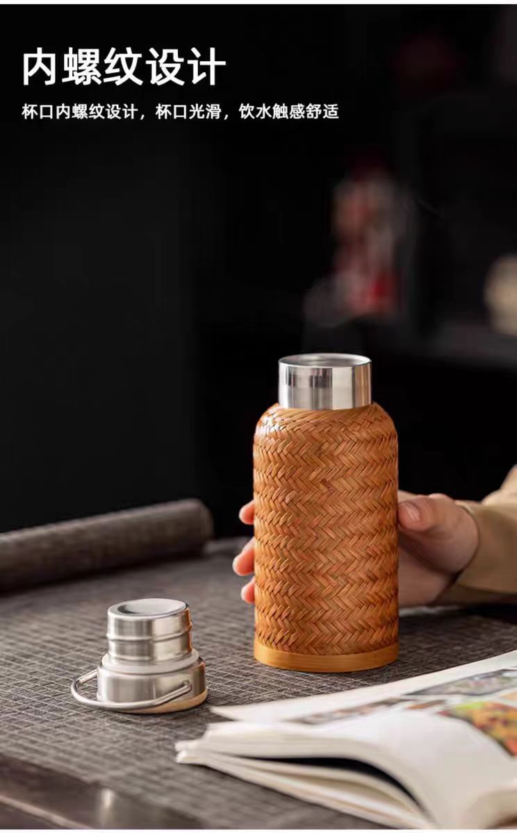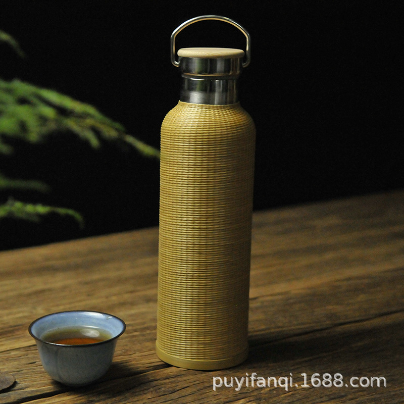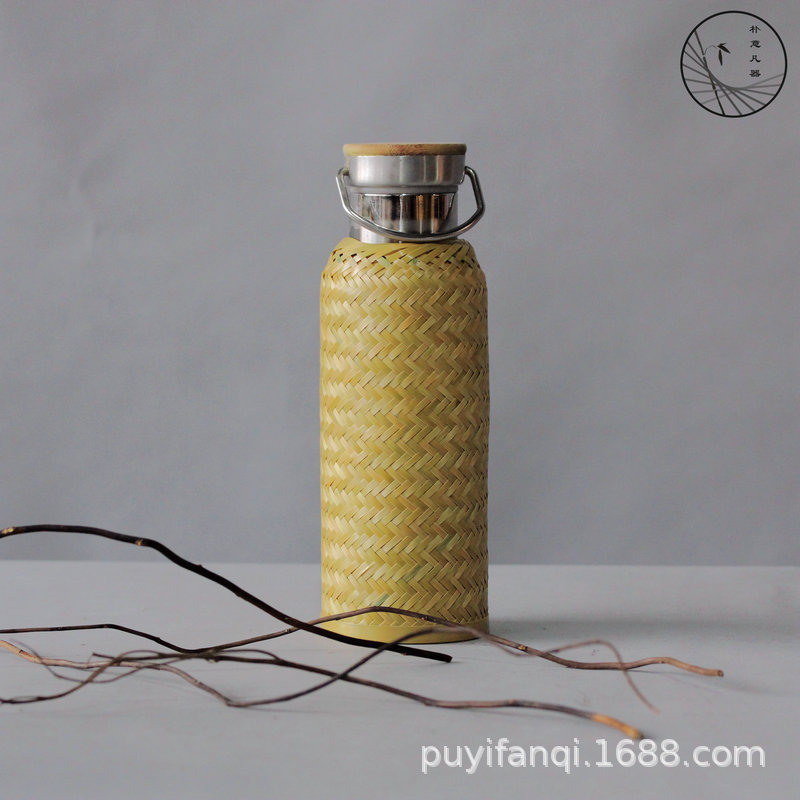 수제 대나무 짠 대나무 실크 절연 스트레이트 컵 휴대용 찻잔 무형 문화유산 공예 여행 차 세트 304 스테인레스 스틸스토어 가기