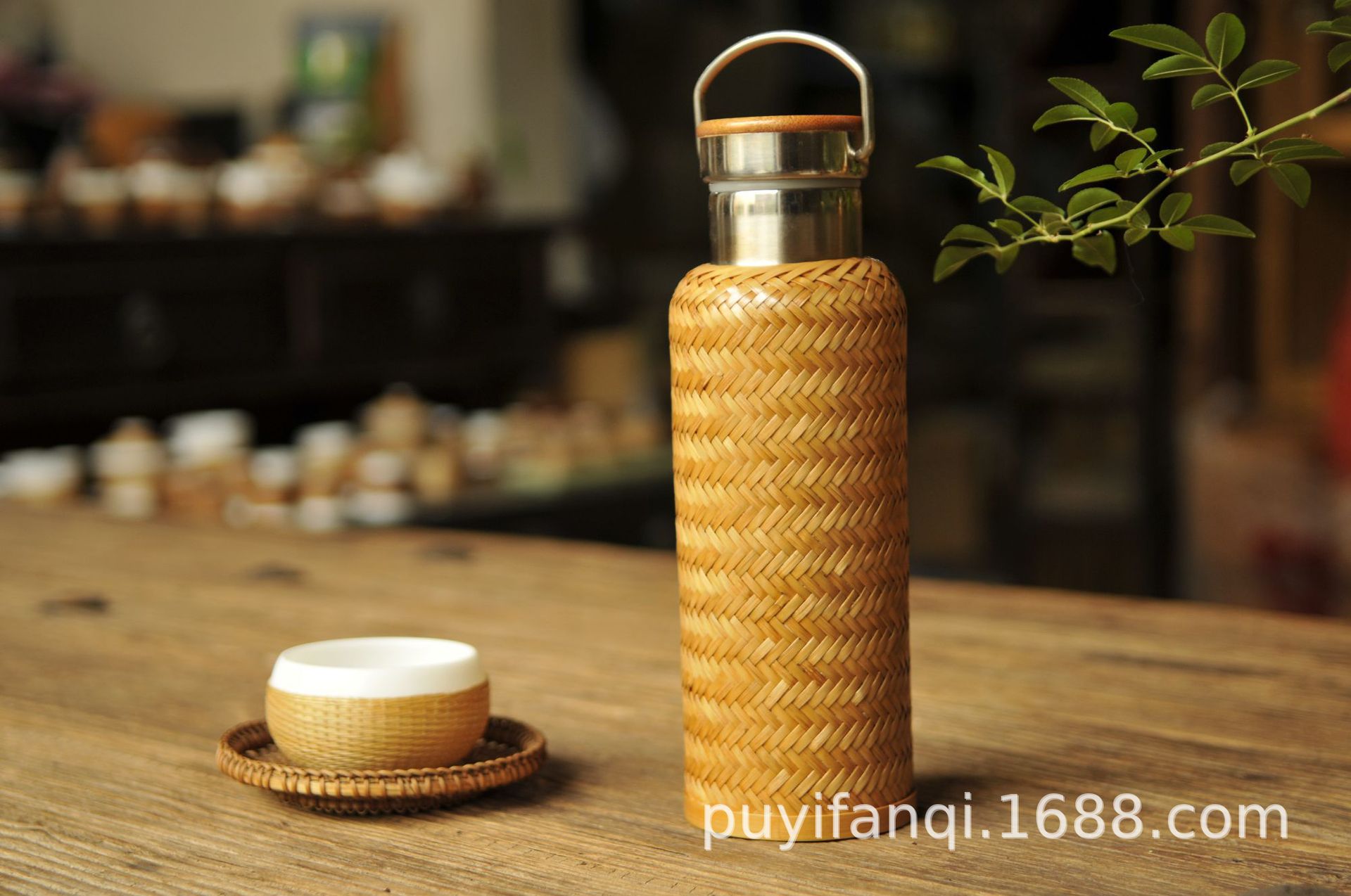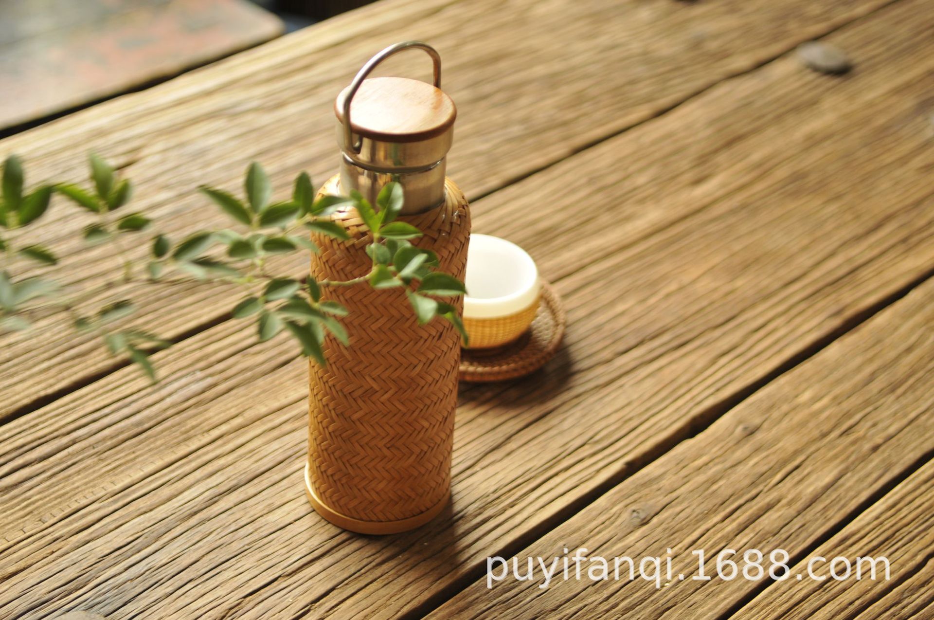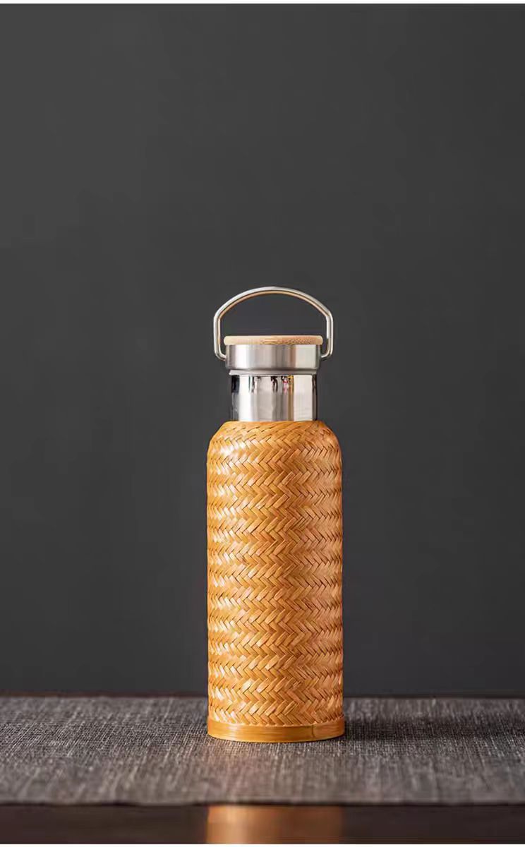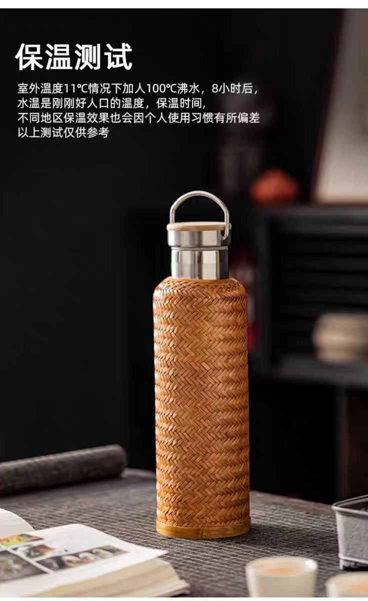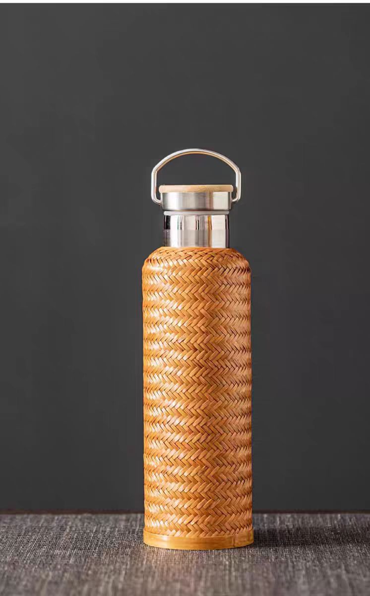 수제 대나무 짠 대나무 실크 절연 스트레이트 컵 휴대용 찻잔 무형 문화유산 공예 여행 차 세트 304 스테인레스 스틸스토어 가기