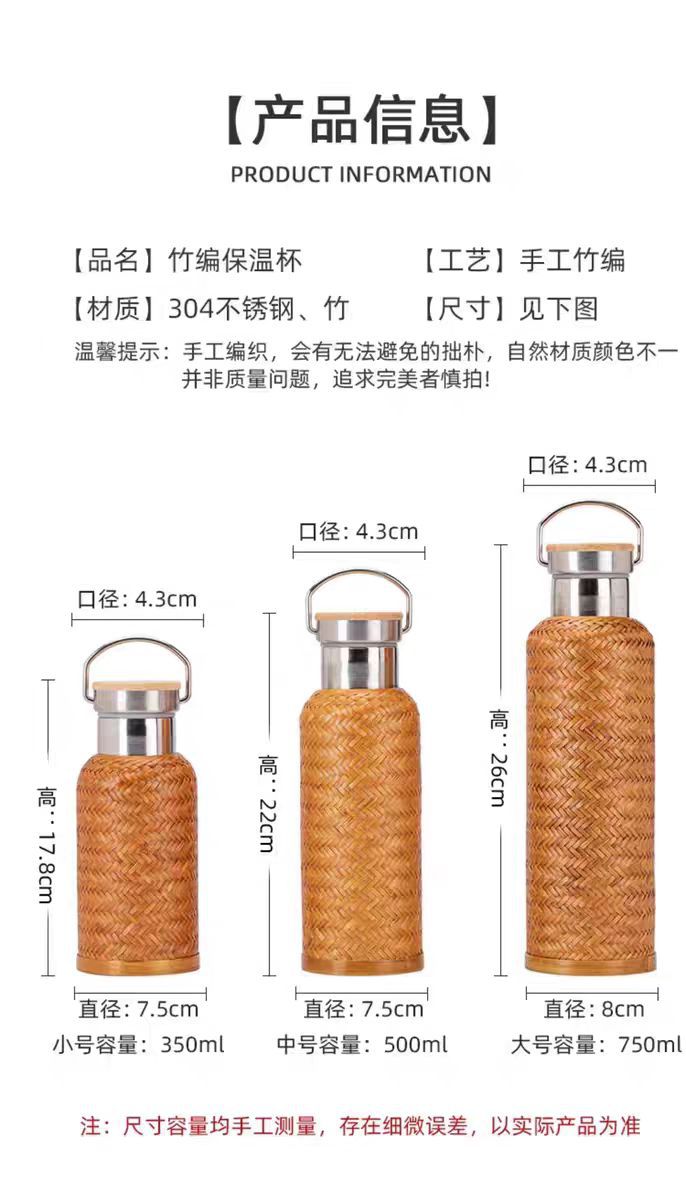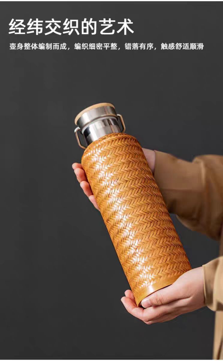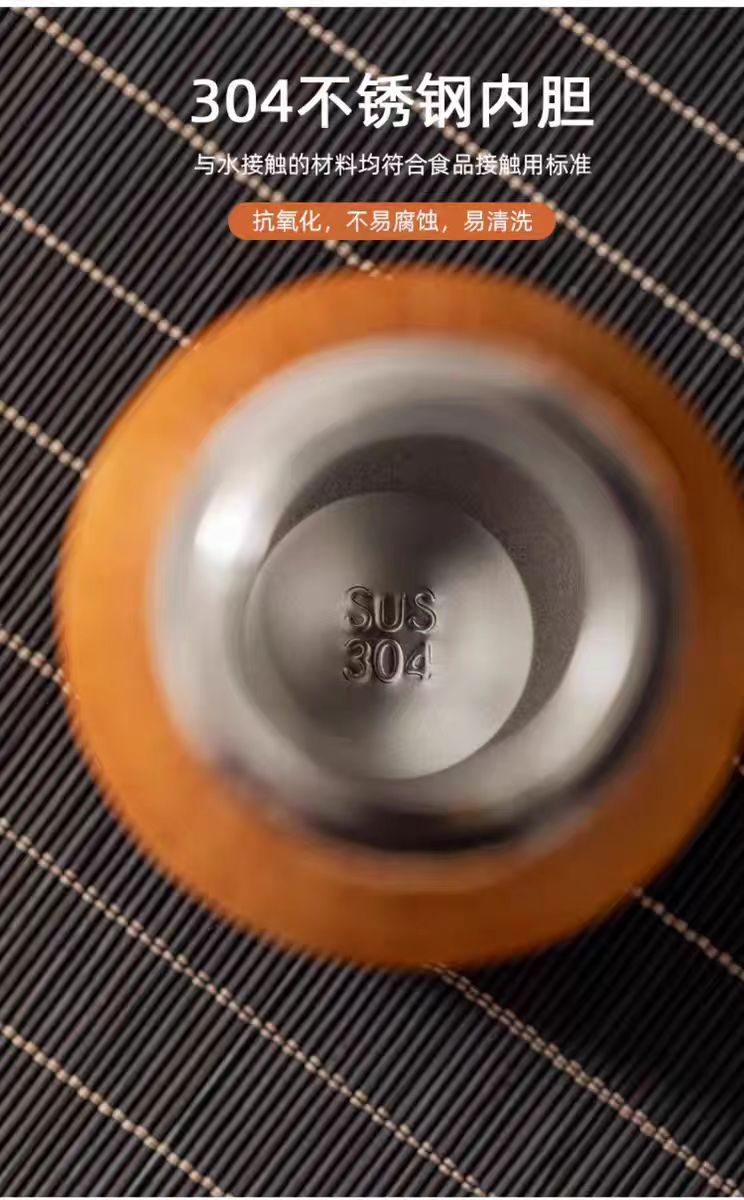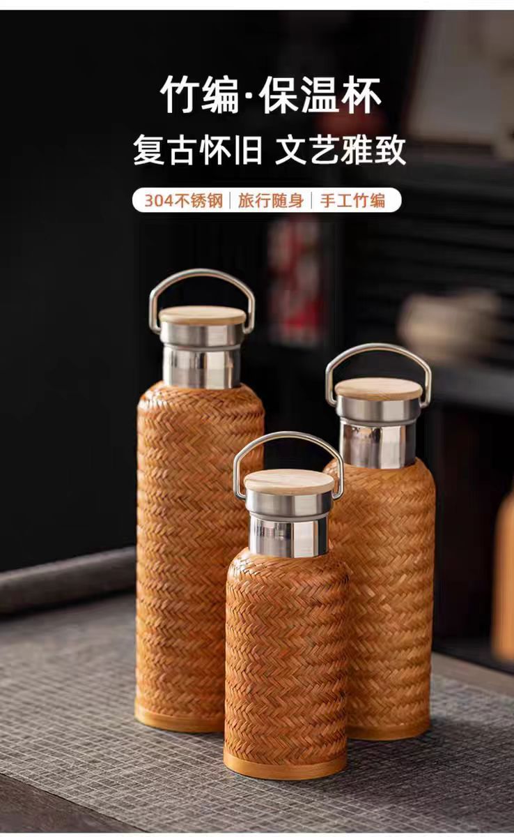수제 대나무 짠 대나무 실크 절연 스트레이트 컵 휴대용 찻잔 무형 문화유산 공예 여행 차 세트 304 스테인레스 스틸