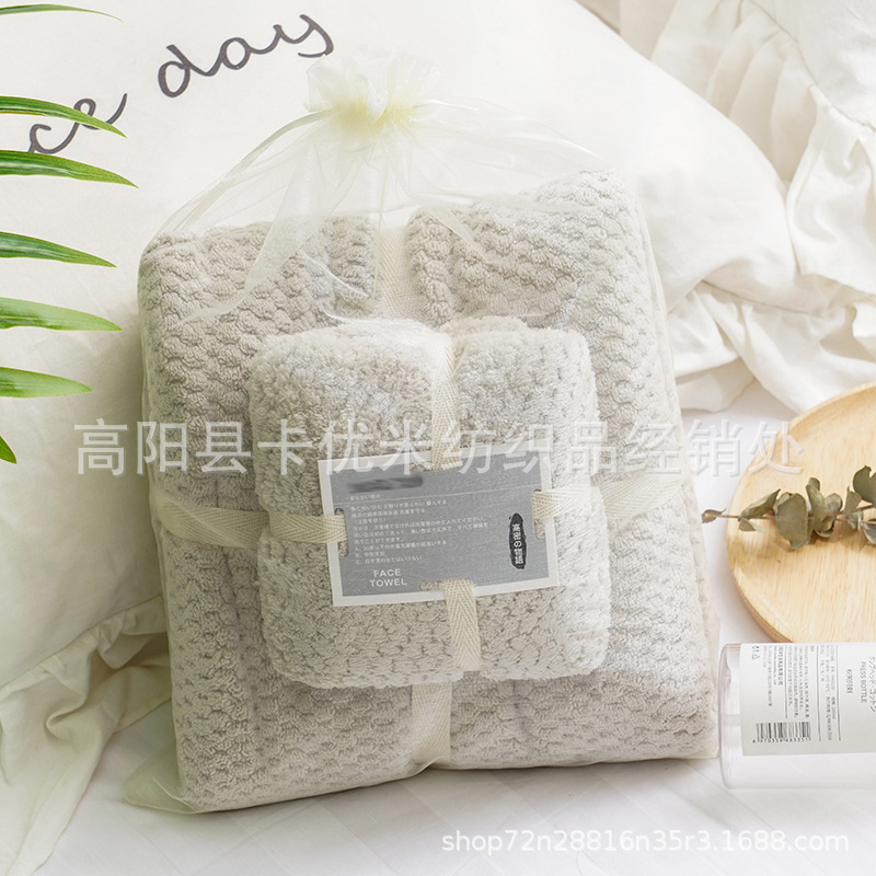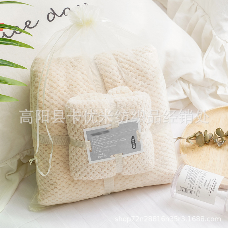 국경 간 산호 양털 수건 목욕 수건 파인애플 격자 어머니 수건 선물 수건 공장 도매 머리카락 세대스토어 가기