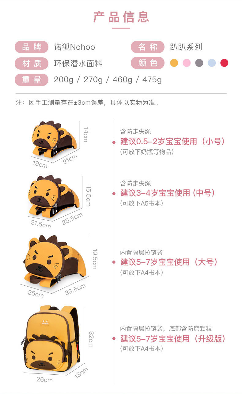 Nuo Fox 가방 배낭 유치원 아기 소년과 소녀 1-3-6 세 분실 방지 배낭 어린이 작은 가방 여아 가방