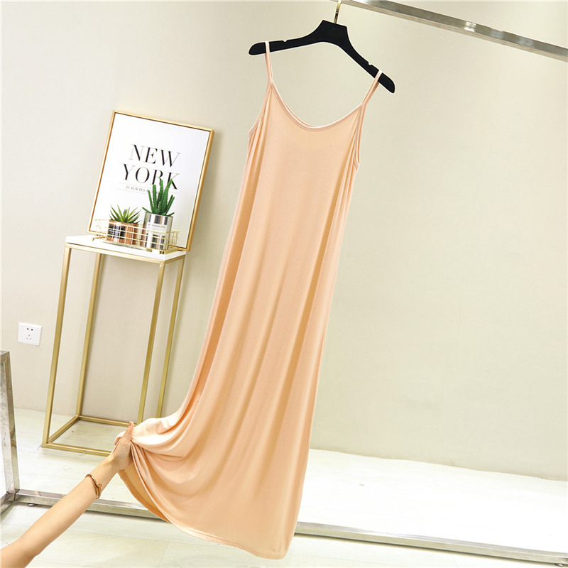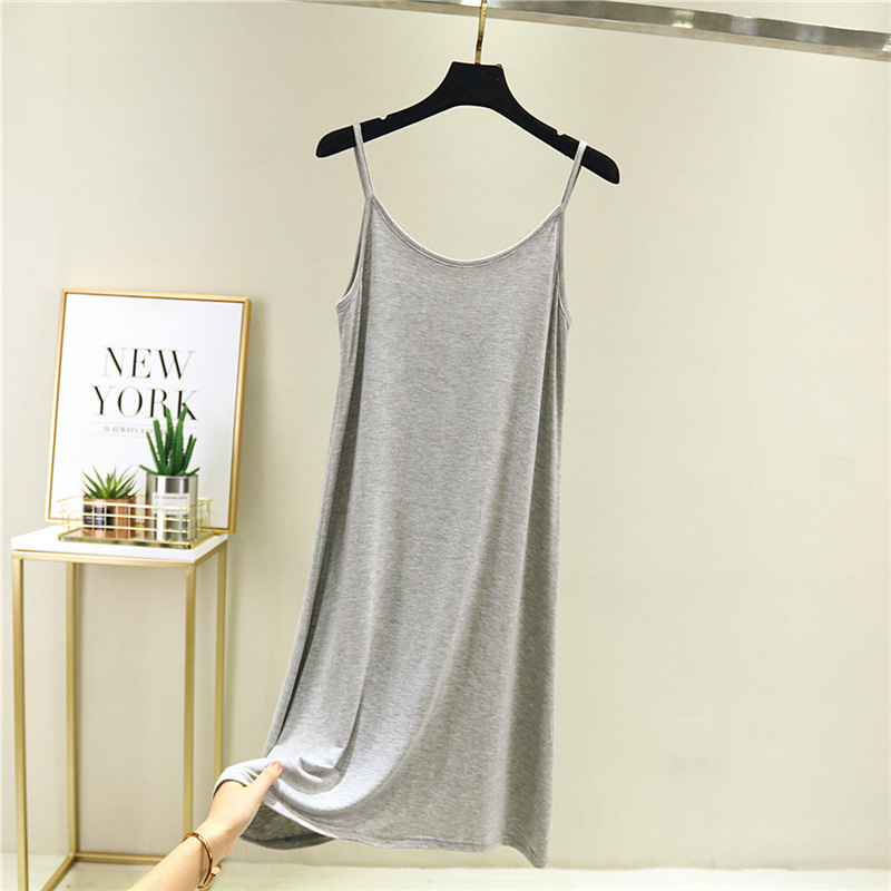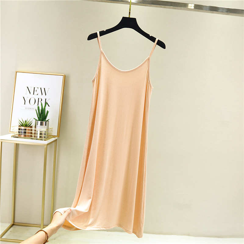 공장 도매 모달 원피스 민소매 짧은 중간 길이 페티코트 슬림 V 넥 베이스 스커트 홈 멜빵 잠옷스토어 가기