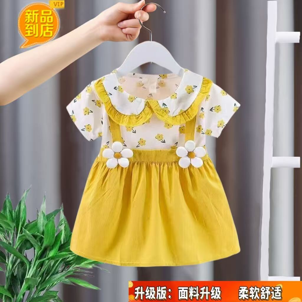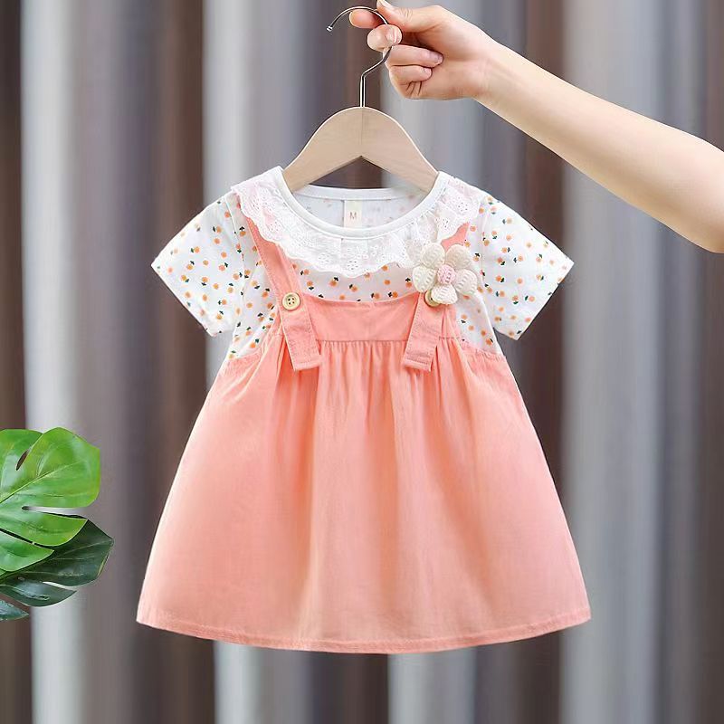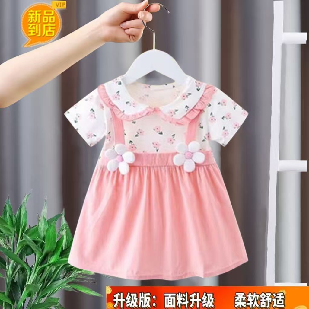 2026년 여름 신상 여아 라운드넥 원피스, 여자 아기 면 패션 멜빵 투피스 스타일 공주 드레스스토어 가기