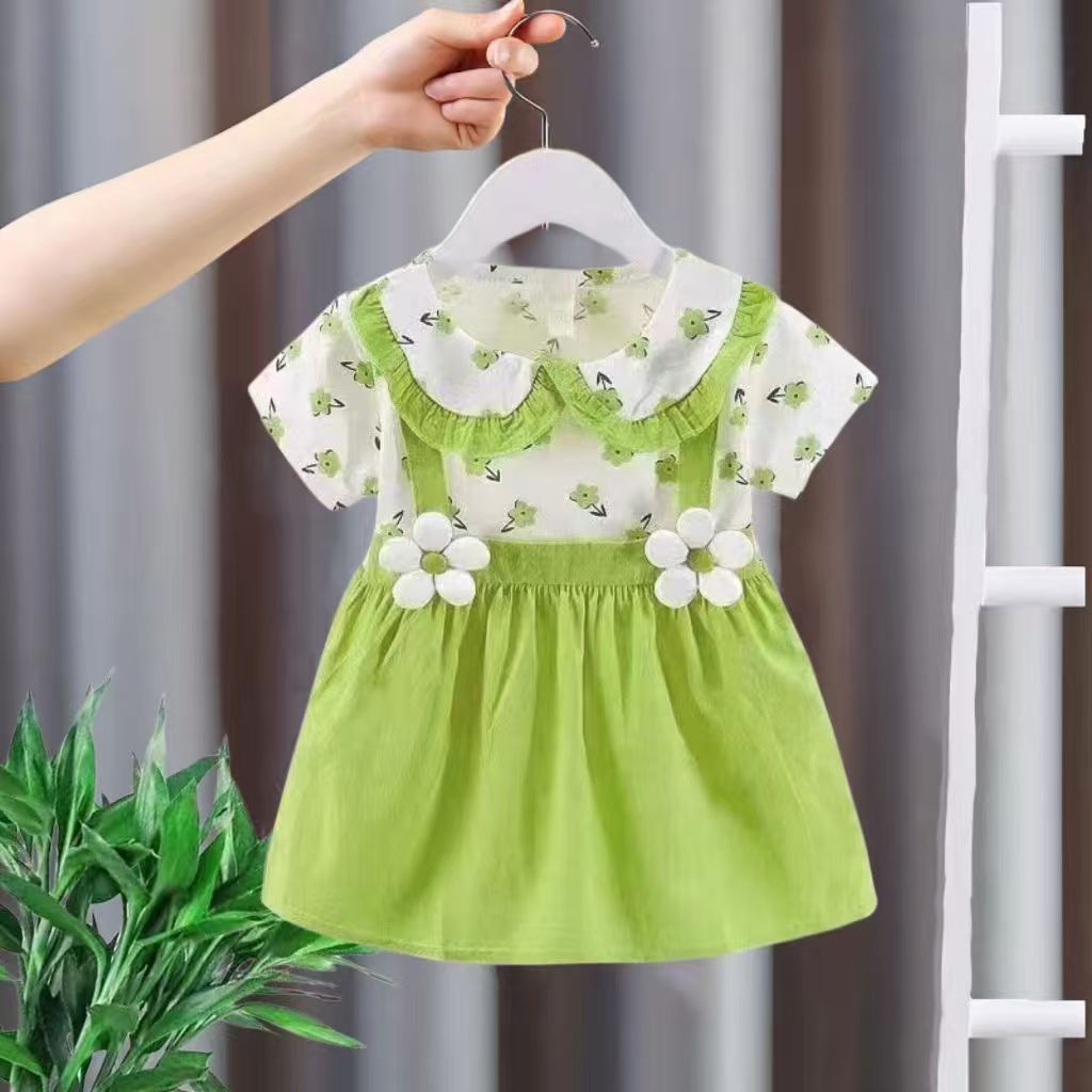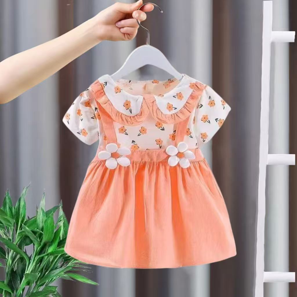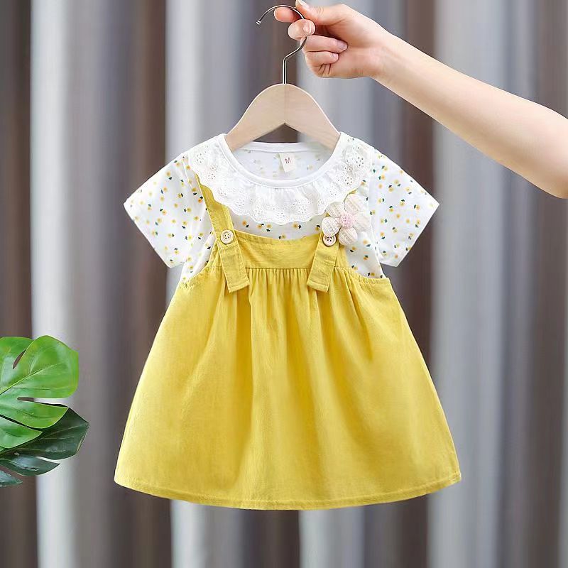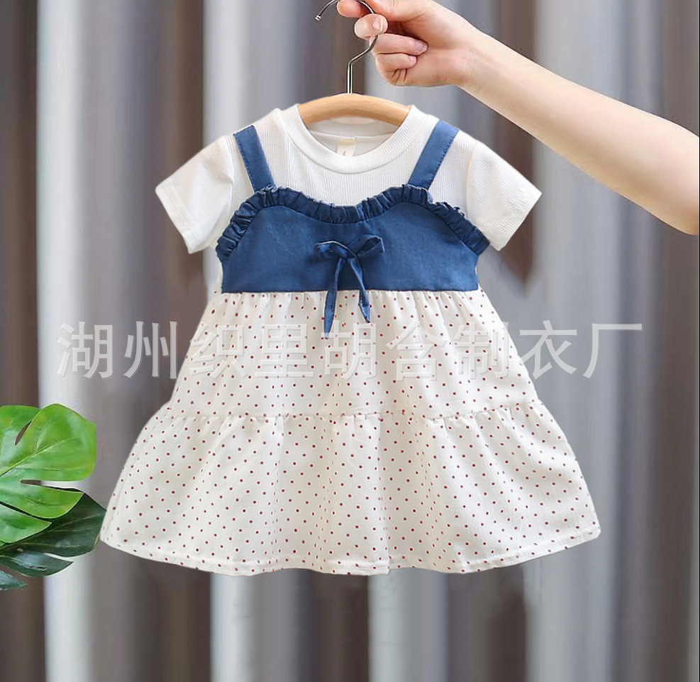 2026년 여름 신상 여아 라운드넥 원피스, 여자 아기 면 패션 멜빵 투피스 스타일 공주 드레스스토어 가기