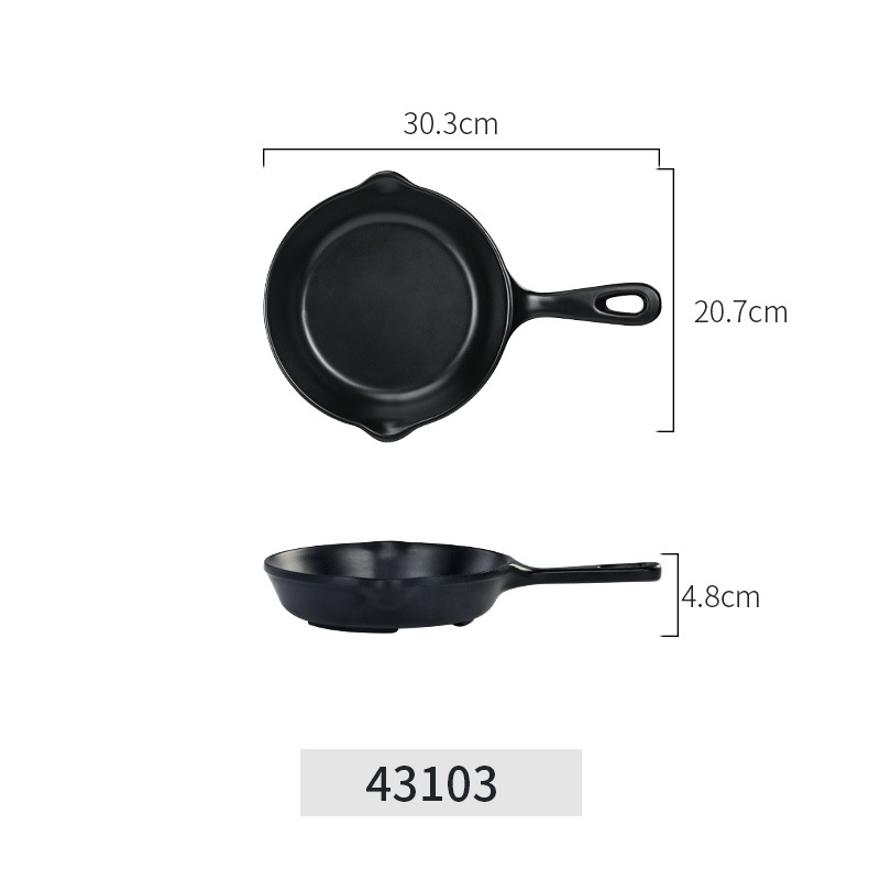 손잡이가 있는 멜라민 바베큐 접시 일본 검정 젖빛 창작 식기 팬 스페이드 외국 무역용 플라스틱 접시스토어 가기