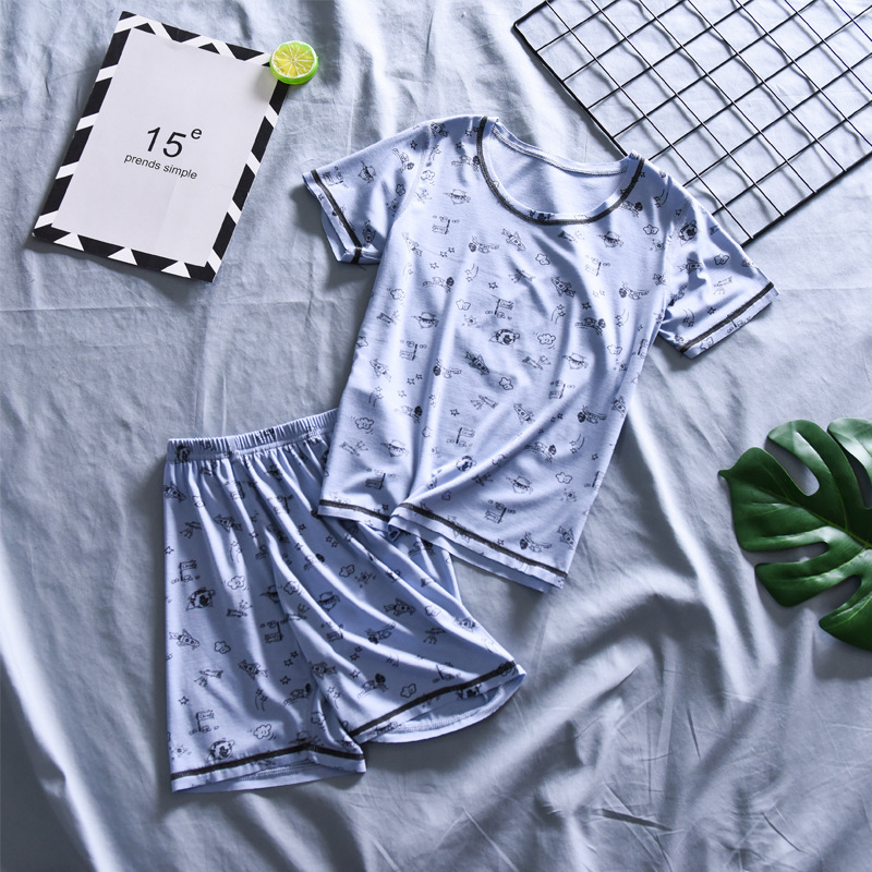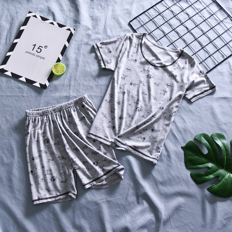 모달 어린이 가정 옷 세트 여름 얇은 소년 에어컨 옷 아기 작은 소년 큰 어린이 반팔 잠옷