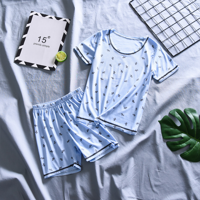 모달 어린이 가정 옷 세트 여름 얇은 소년 에어컨 옷 아기 작은 소년 큰 어린이 반팔 잠옷스토어 가기