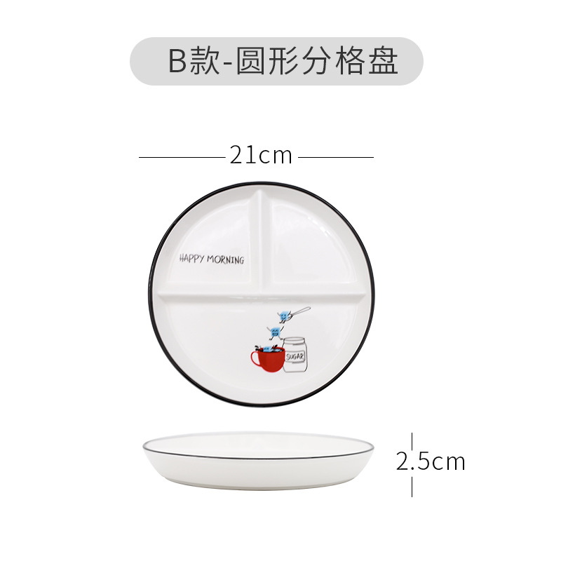 북유럽 라운드 분할 접시 세라믹 과일 간식 아기의 접시 분할 접시 유행 간단한 패스트 푸드 접시스토어 가기