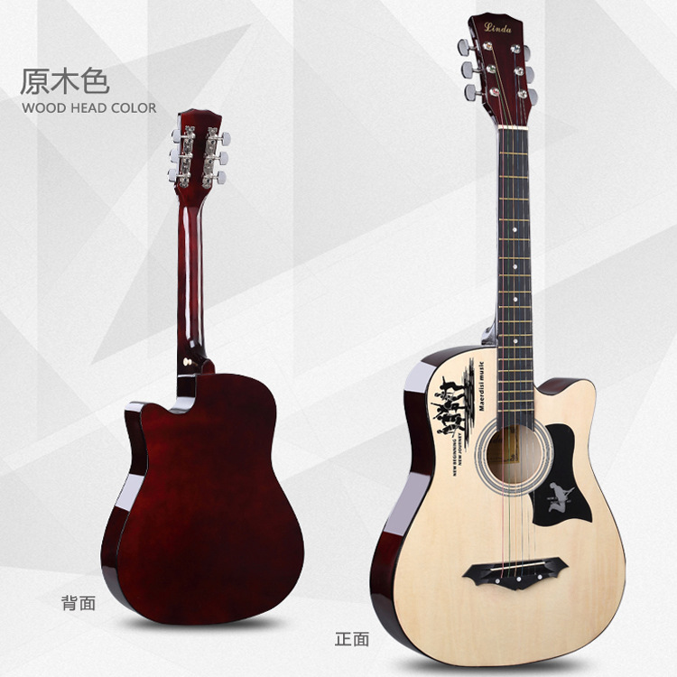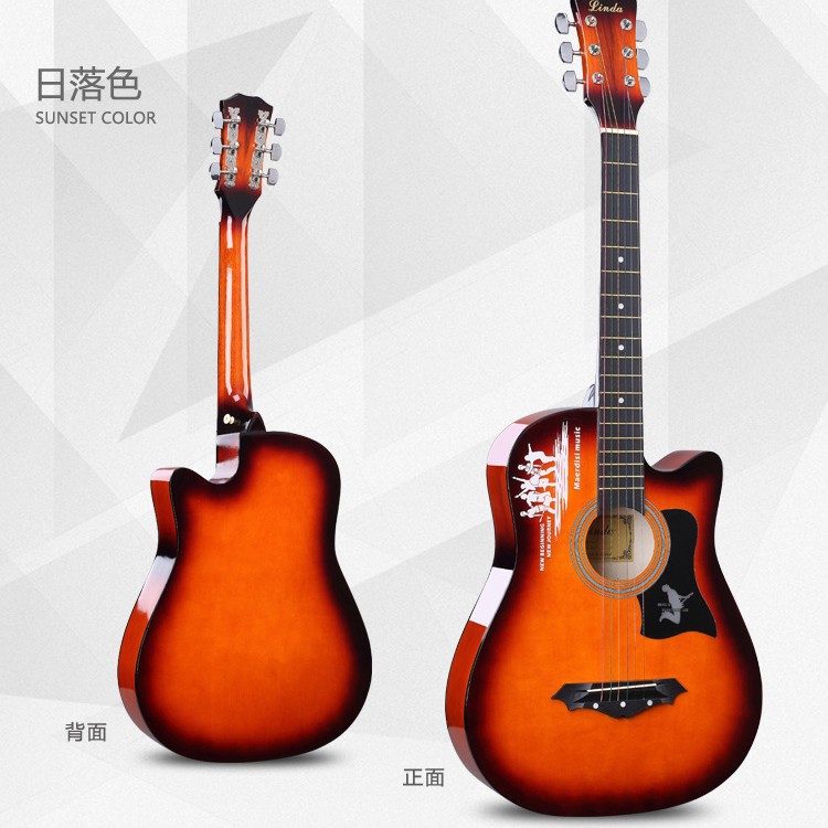 38 인치 어쿠스틱 기타 초보자의 사진이있는 머리카락 세대 연습 피아노 악기 초보자 남녀 학생