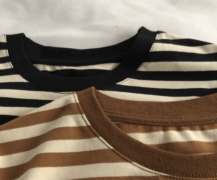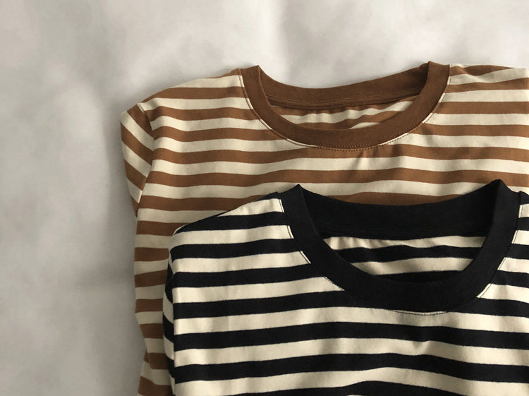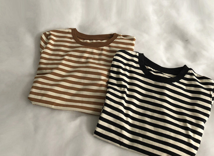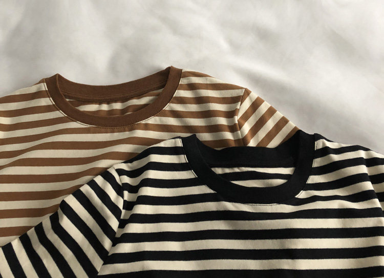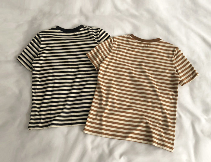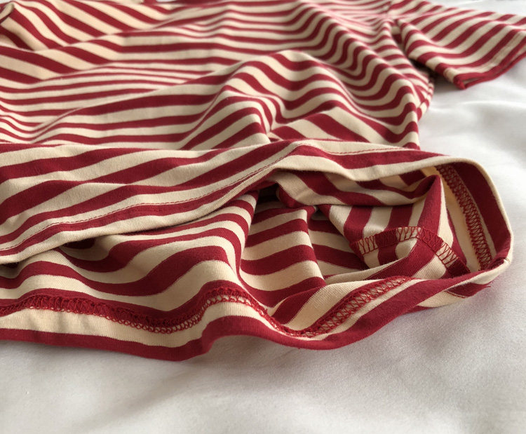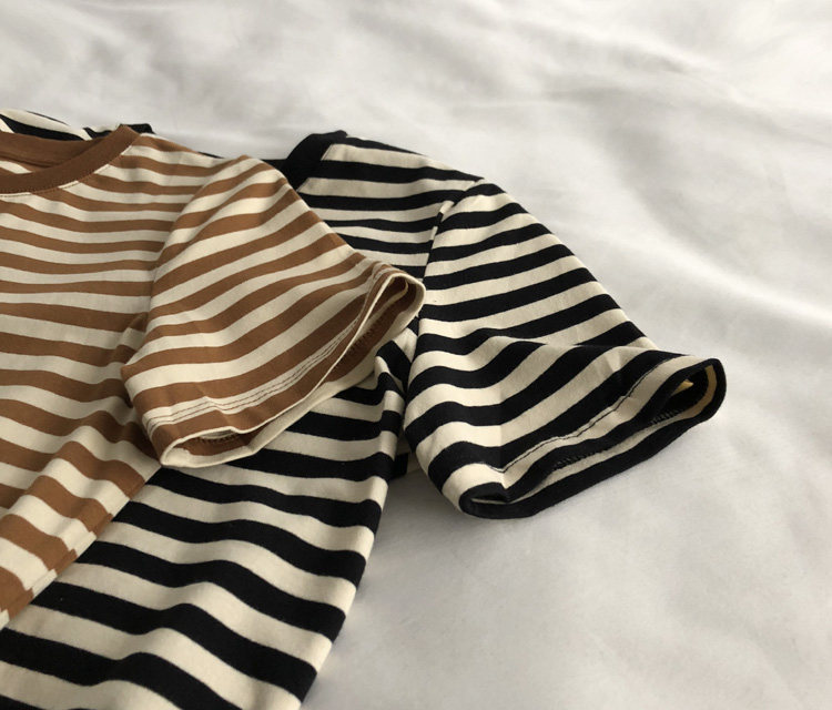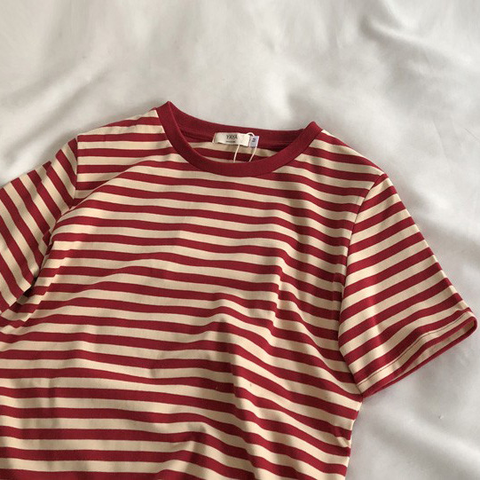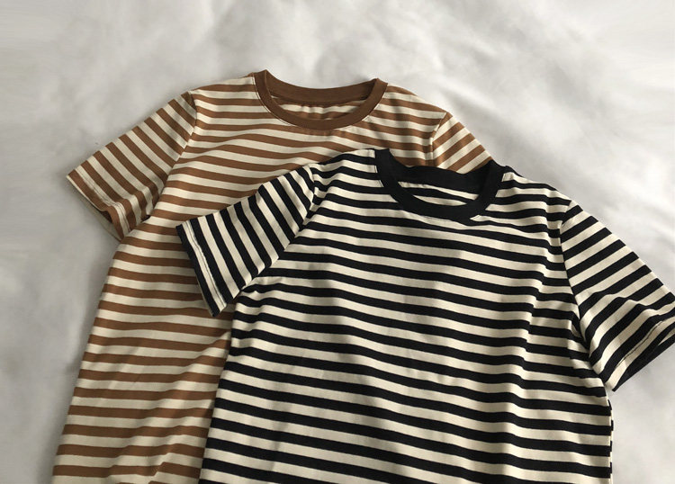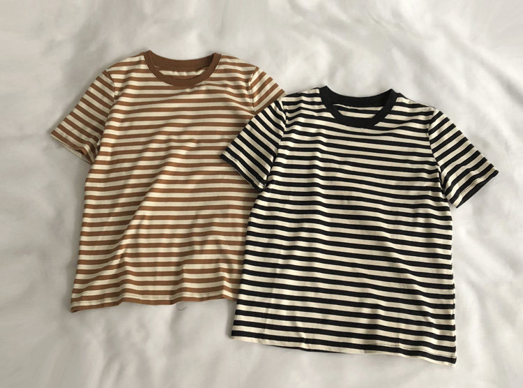 레드 라이스 스트립/레트로 화이트 새로운 색상 매칭 가로 스트라이프 라운드 넥 셔츠 반팔 면 티셔츠 여성 탑 베이스 셔츠 여름 티스토어 가기