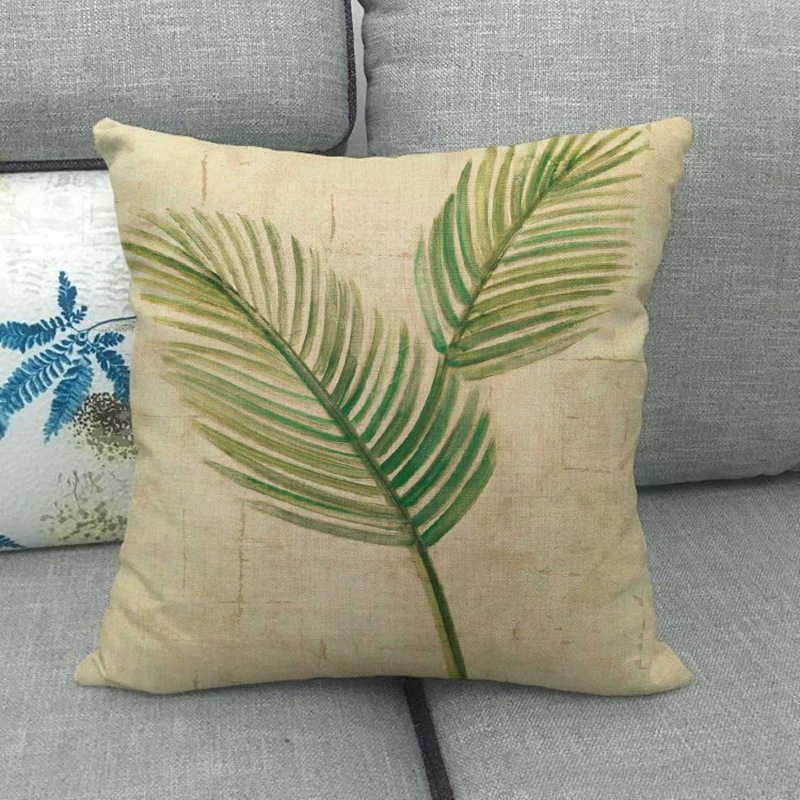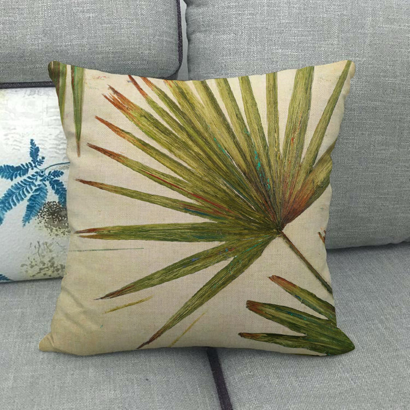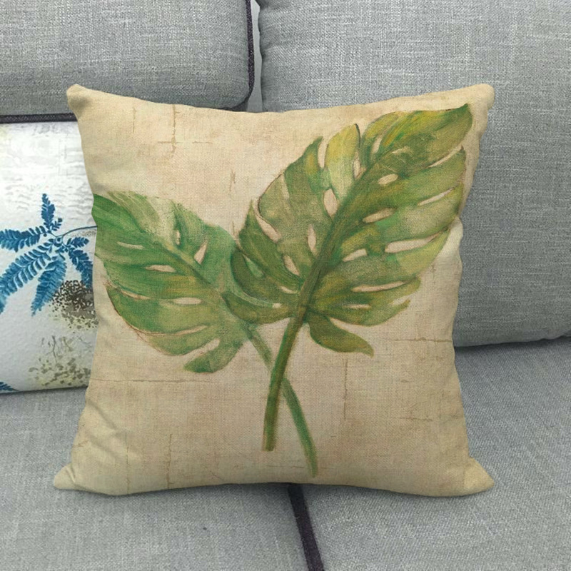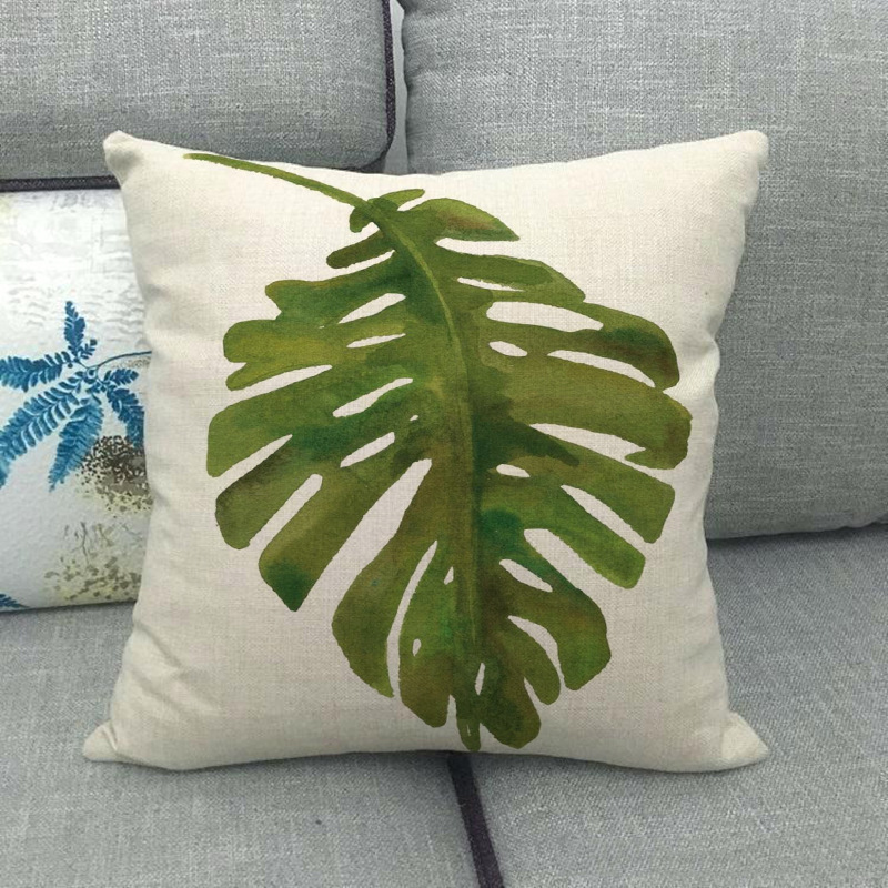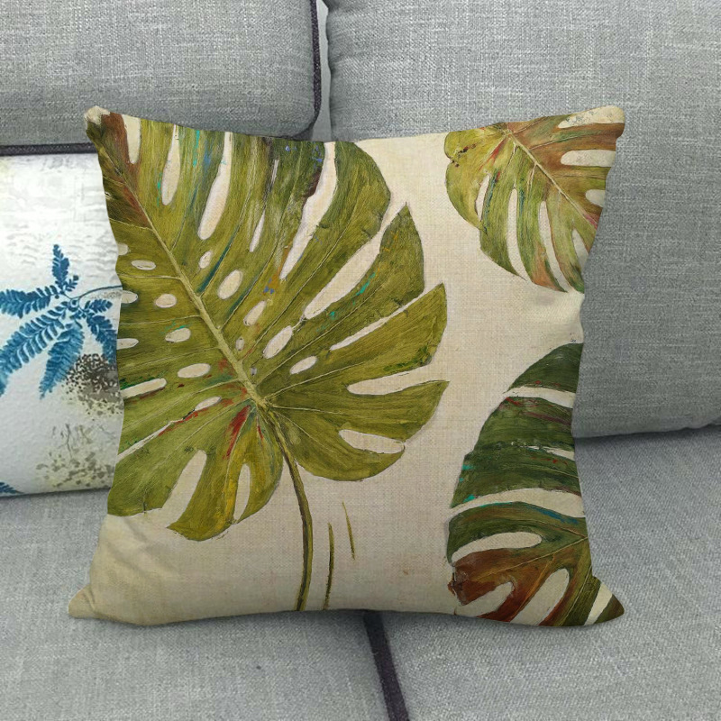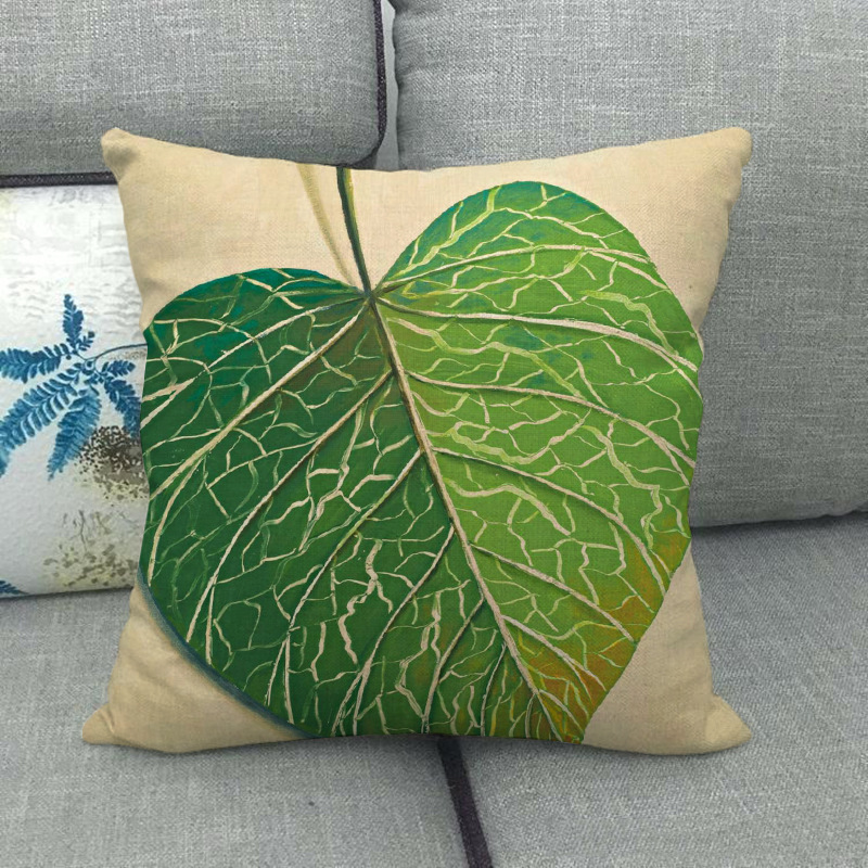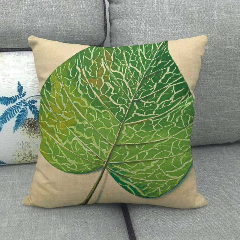 유화 그린 리프 패턴 린넨 베개 케이스 오피스 베개 케이스 공장 직통 공급 036스토어 가기