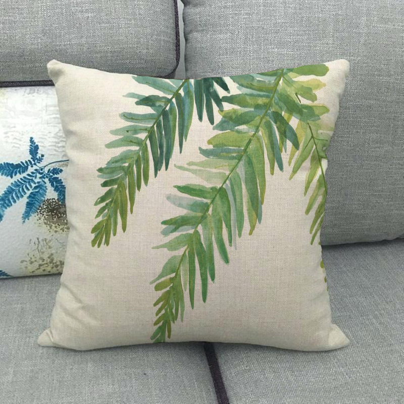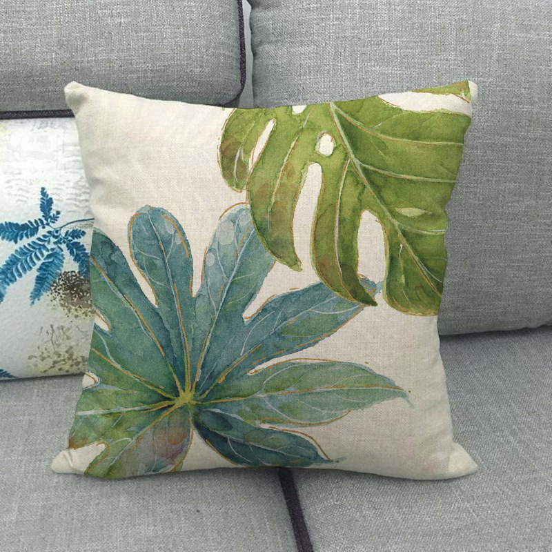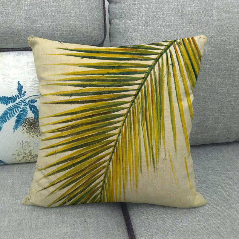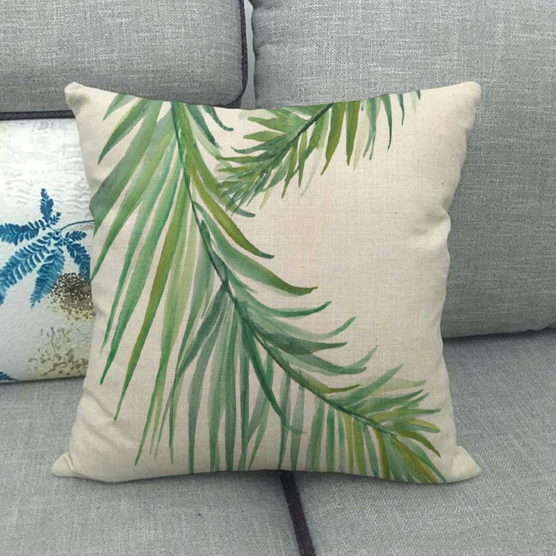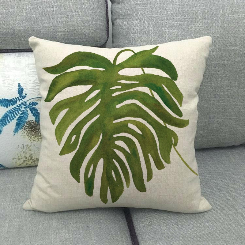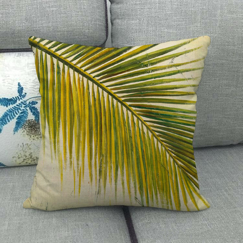 유화 그린 리프 패턴 린넨 베개 케이스 오피스 베개 케이스 공장 직통 공급 036스토어 가기