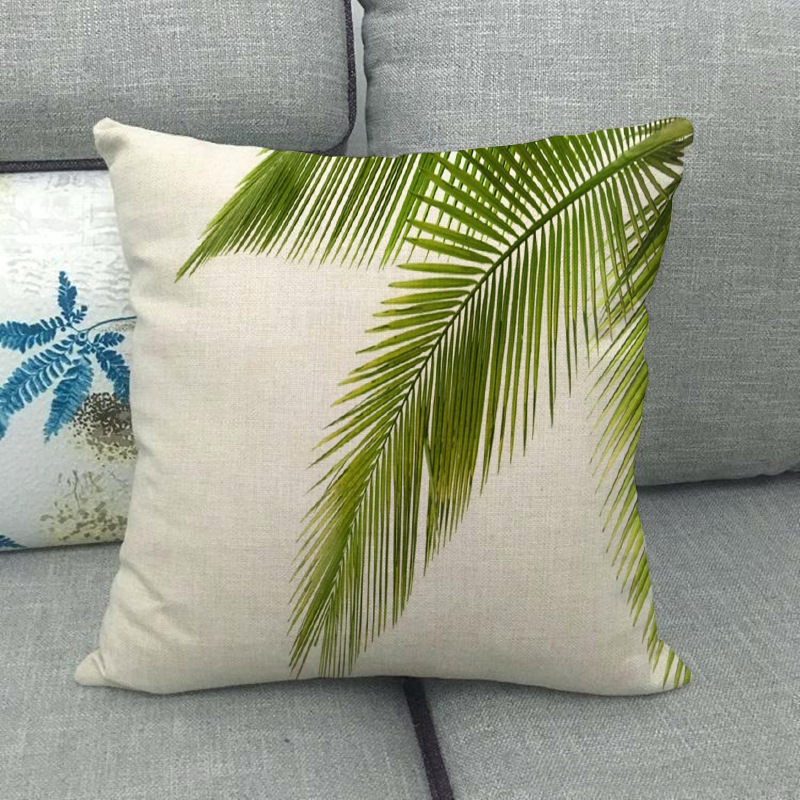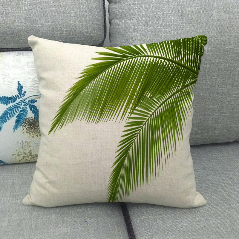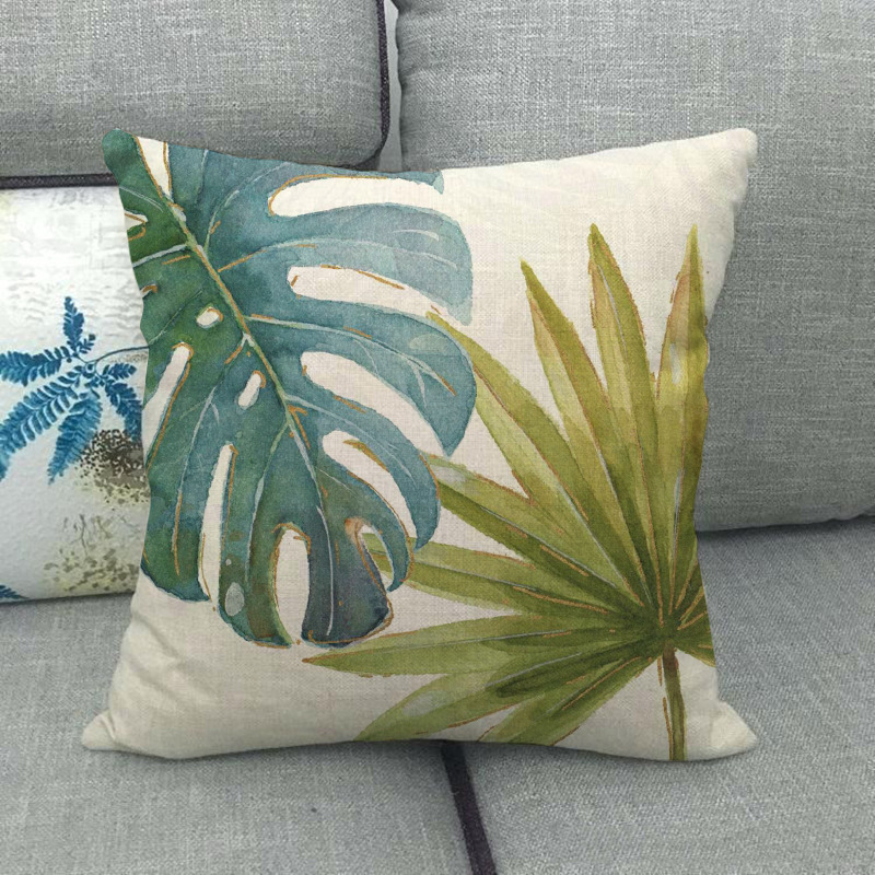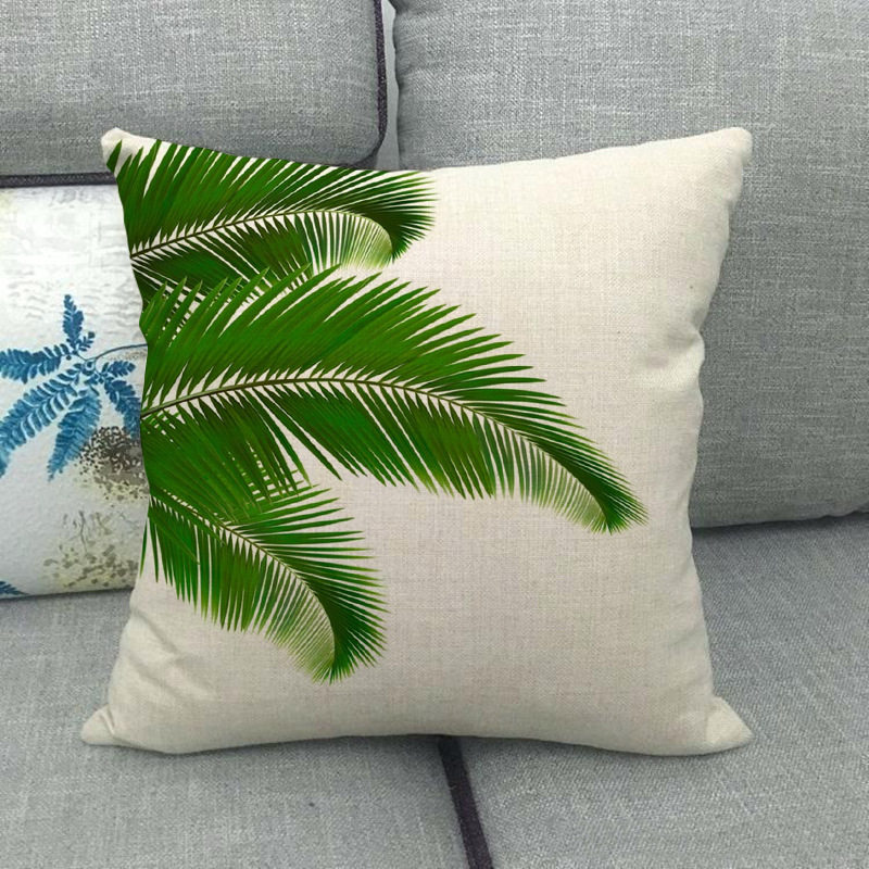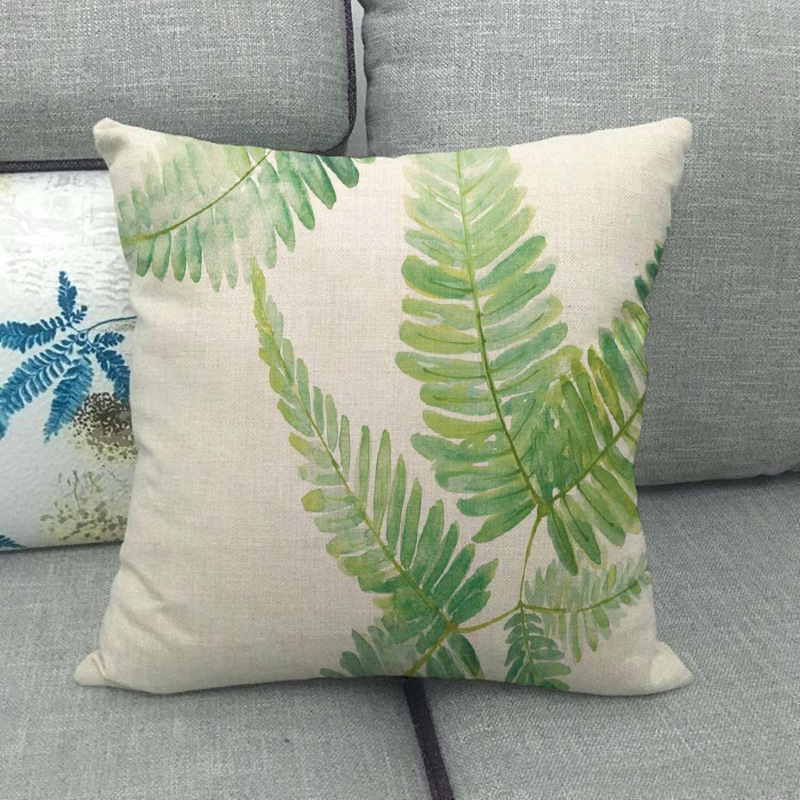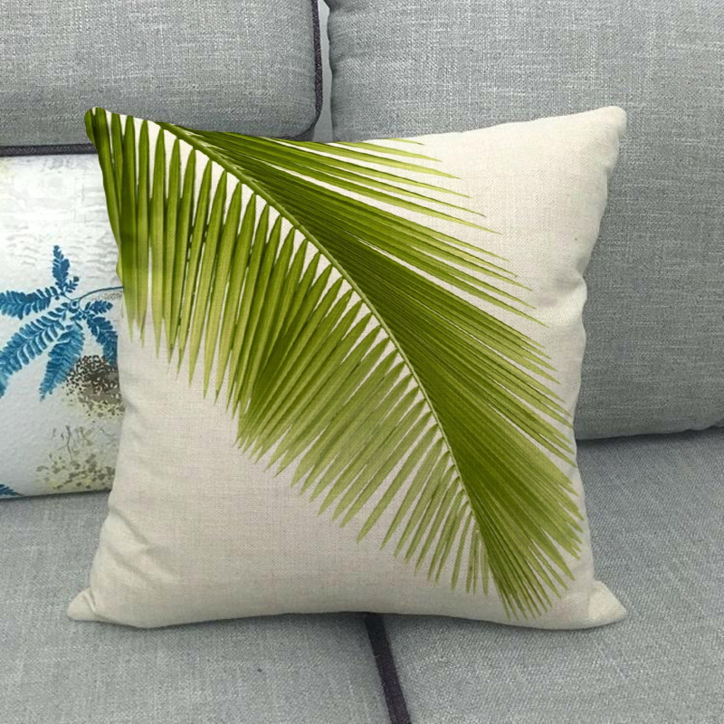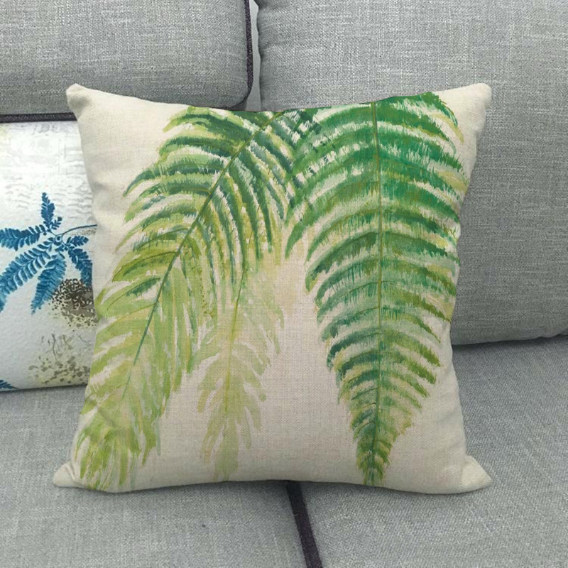 유화 그린 리프 패턴 린넨 베개 케이스 오피스 베개 케이스 공장 직통 공급 036스토어 가기