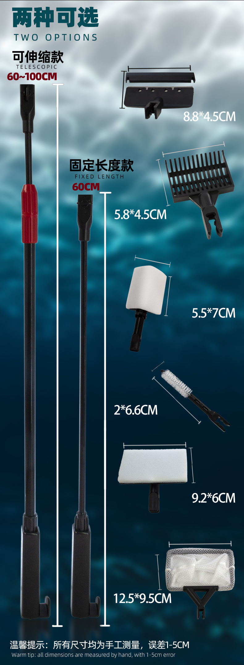 물고기 탱크 수족관 청소 도구 세트 업그레이드 된 고정 길이 6-in-one 긴 손잡이 없음 데드 앵글 브러시 하오 하이 수족관