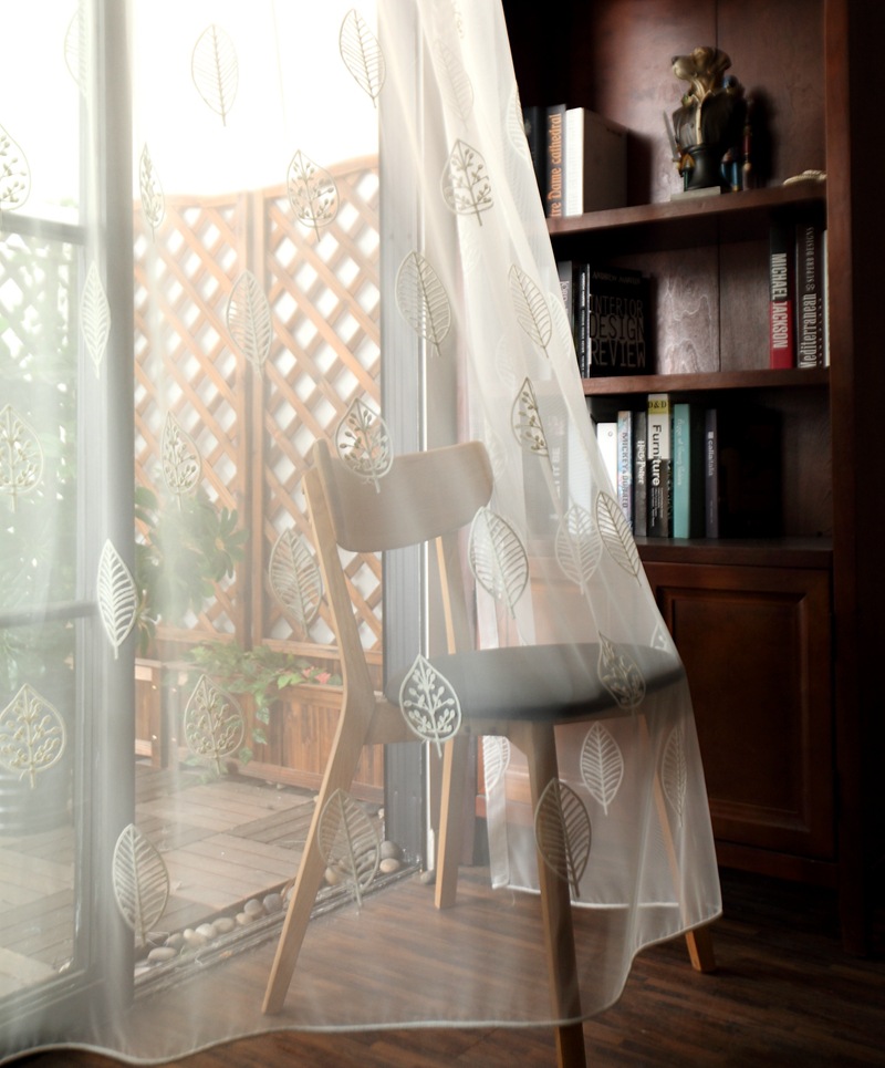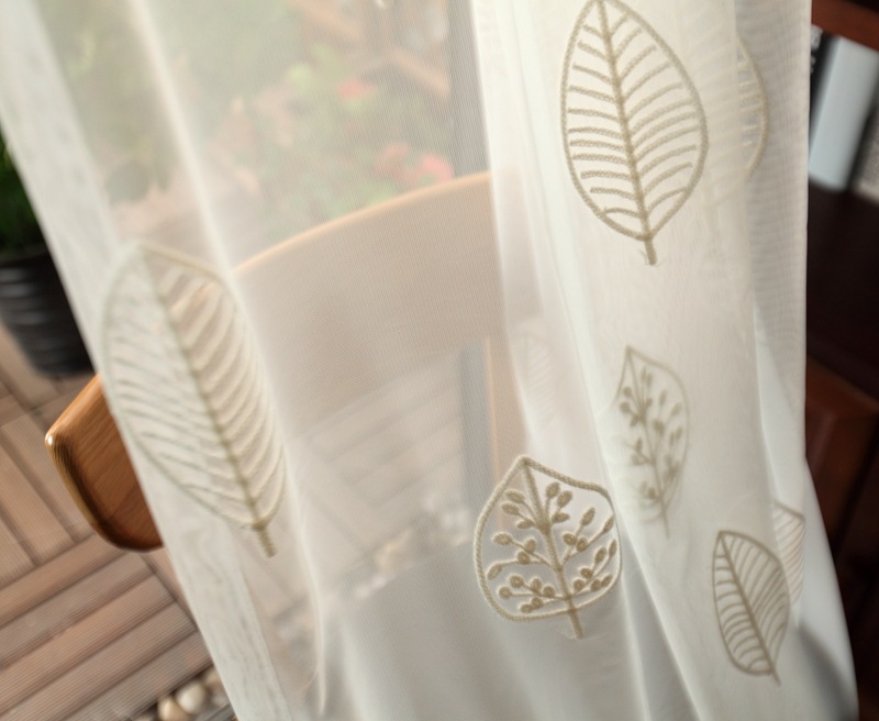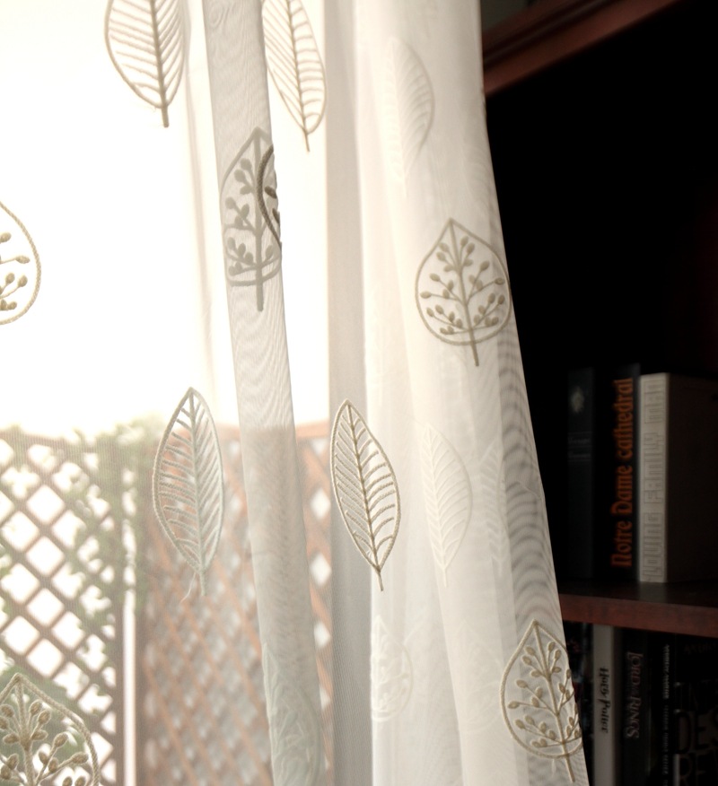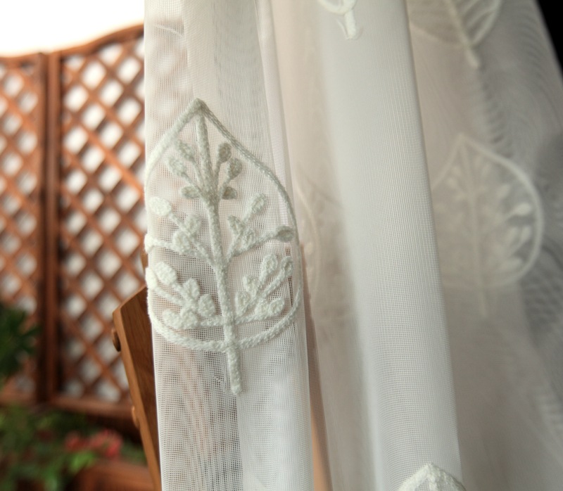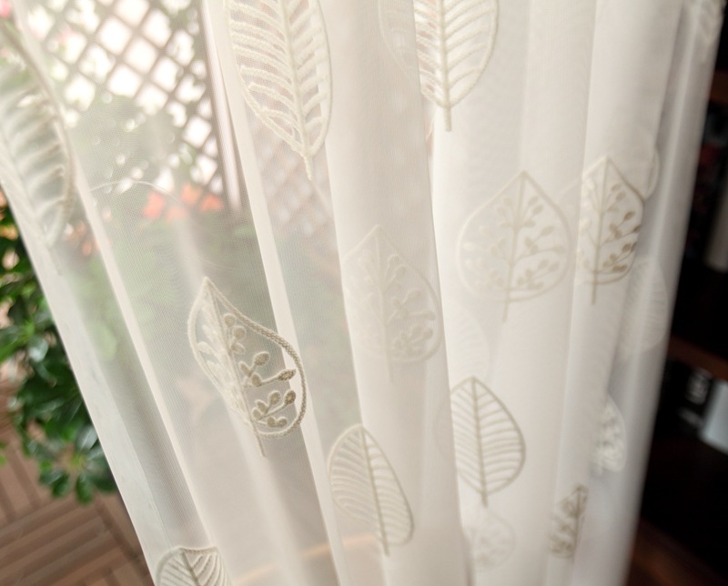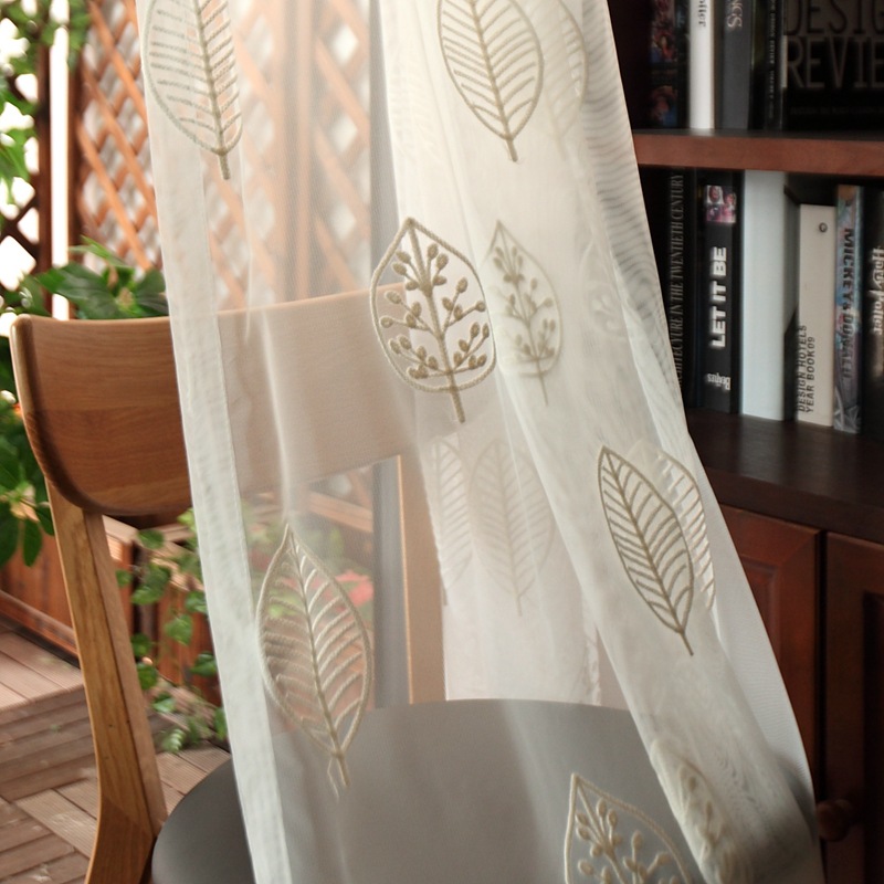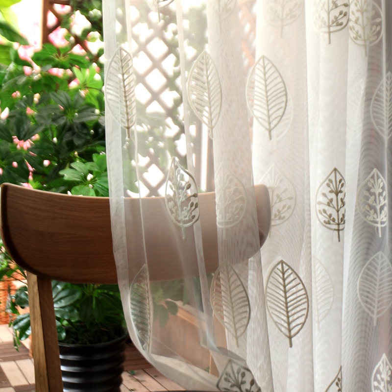 아메리칸 스타일 잎 자수 창 화면 현대 빛 투과성 커튼 단색 거즈 커튼 아마존 크로스 보더 패브릭스토어 가기