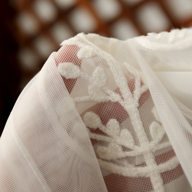 아메리칸 스타일 잎 자수 창 화면 현대 빛 투과성 커튼 단색 거즈 커튼 아마존 크로스 보더 패브릭