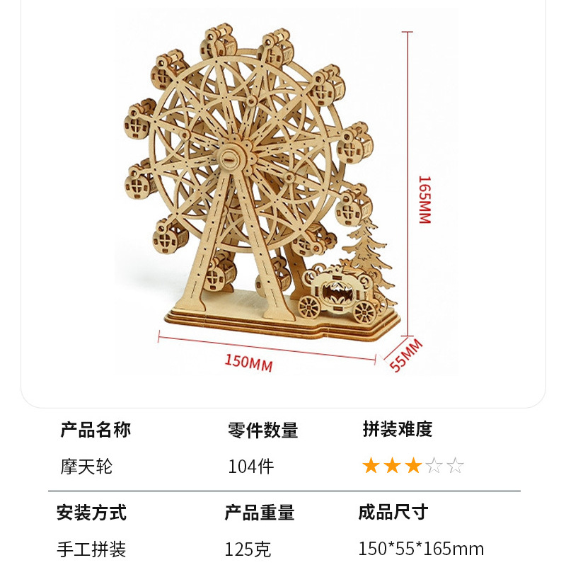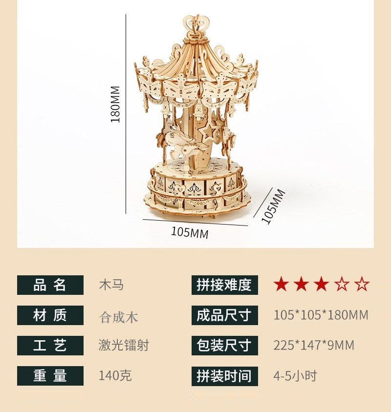 나무 DIY 조립 장난감 기차 스테레오 퍼즐 회전 목마 관람차 호박 자동차 해양 항해 모델스토어 가기