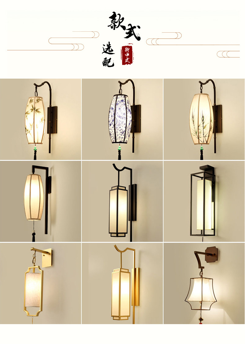 새로운 중국 스타일 벽등 거실 침실 침대 옆등 창의적 현대적 심플 레트로 호텔 복도 통로 LED등