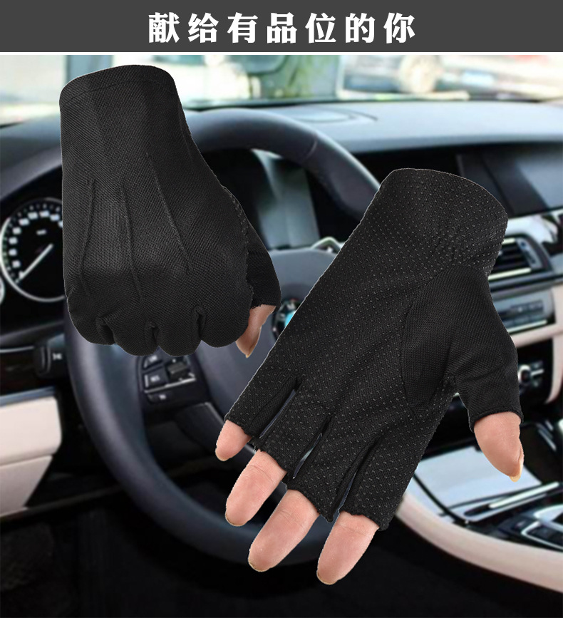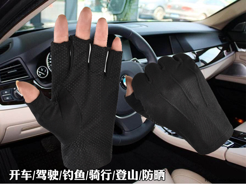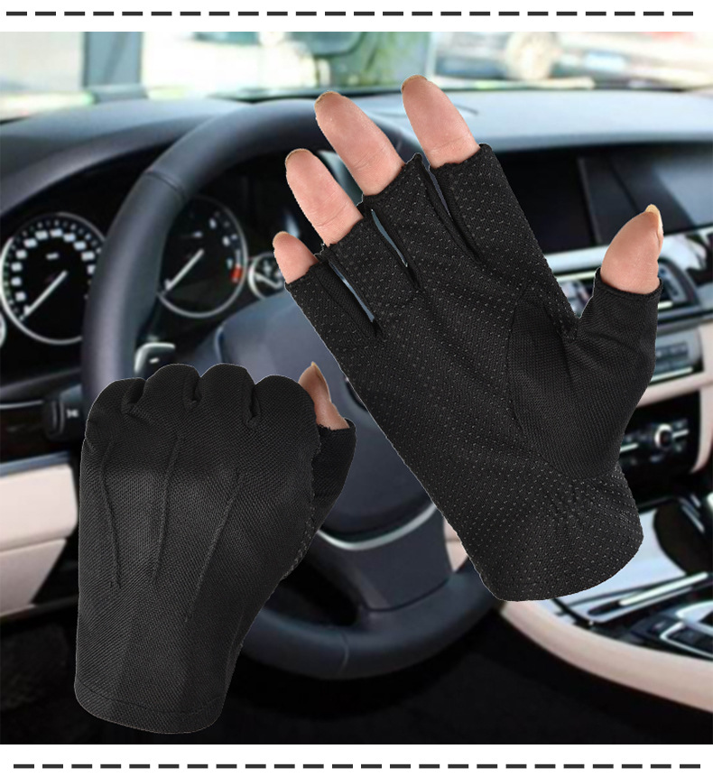 여름 얇은 3 줄 아이스 실크 반 손가락 태양 보호 장갑 운전 야외 스포츠 휘트니스 통기성 승마 미끄럼 방지 장갑