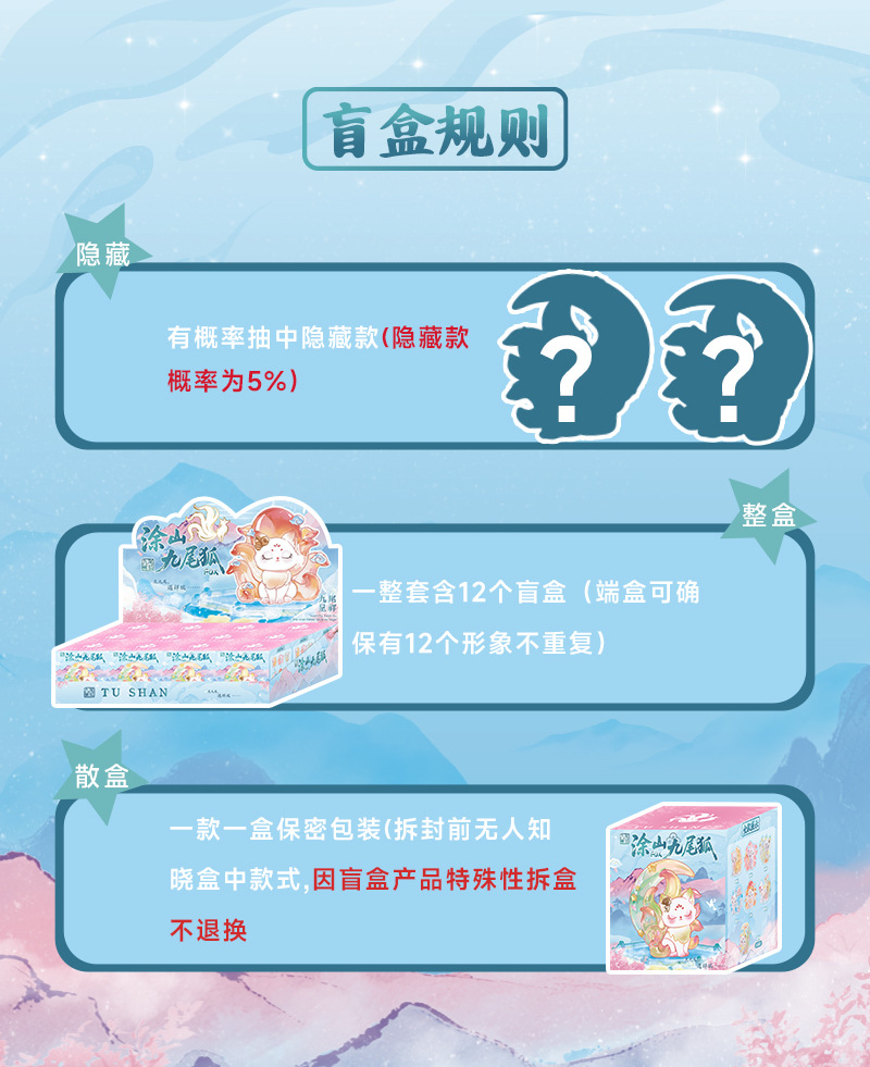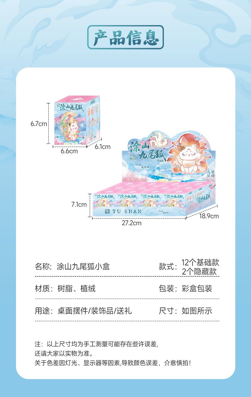 【商品名称】1040-390涂山九尾狐小盲盒 【商品材质】树脂