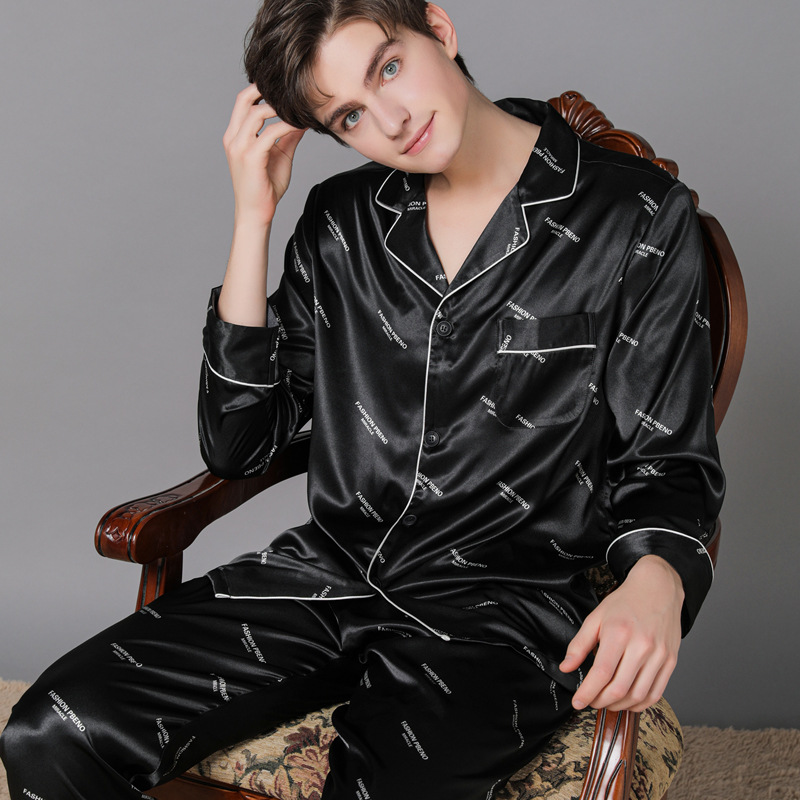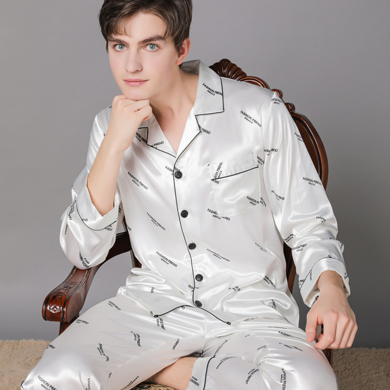 새로운 봄과 가을 실크 커플 잠옷 여자의 가을 얼음 실크 남자의 잠옷 가정 옷 긴 소매 세트스토어 가기