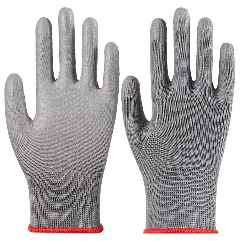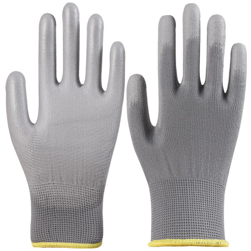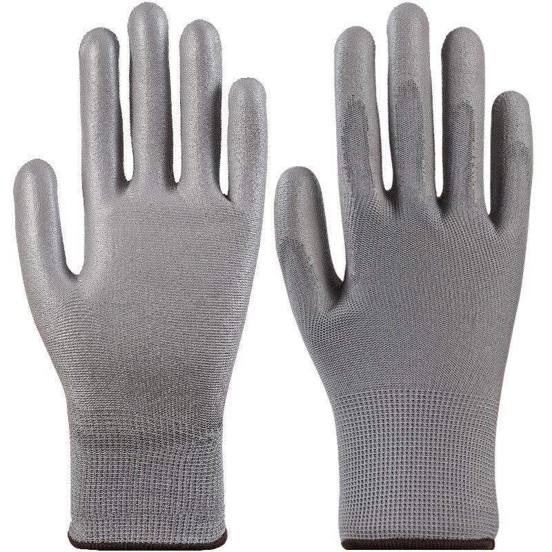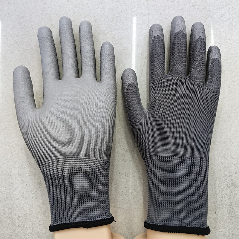 회색 pu 코팅 손바닥 장갑 폴리 우레탄 침지 코팅 정전기 방지 먼지 프리 13 핀 나일론 장갑