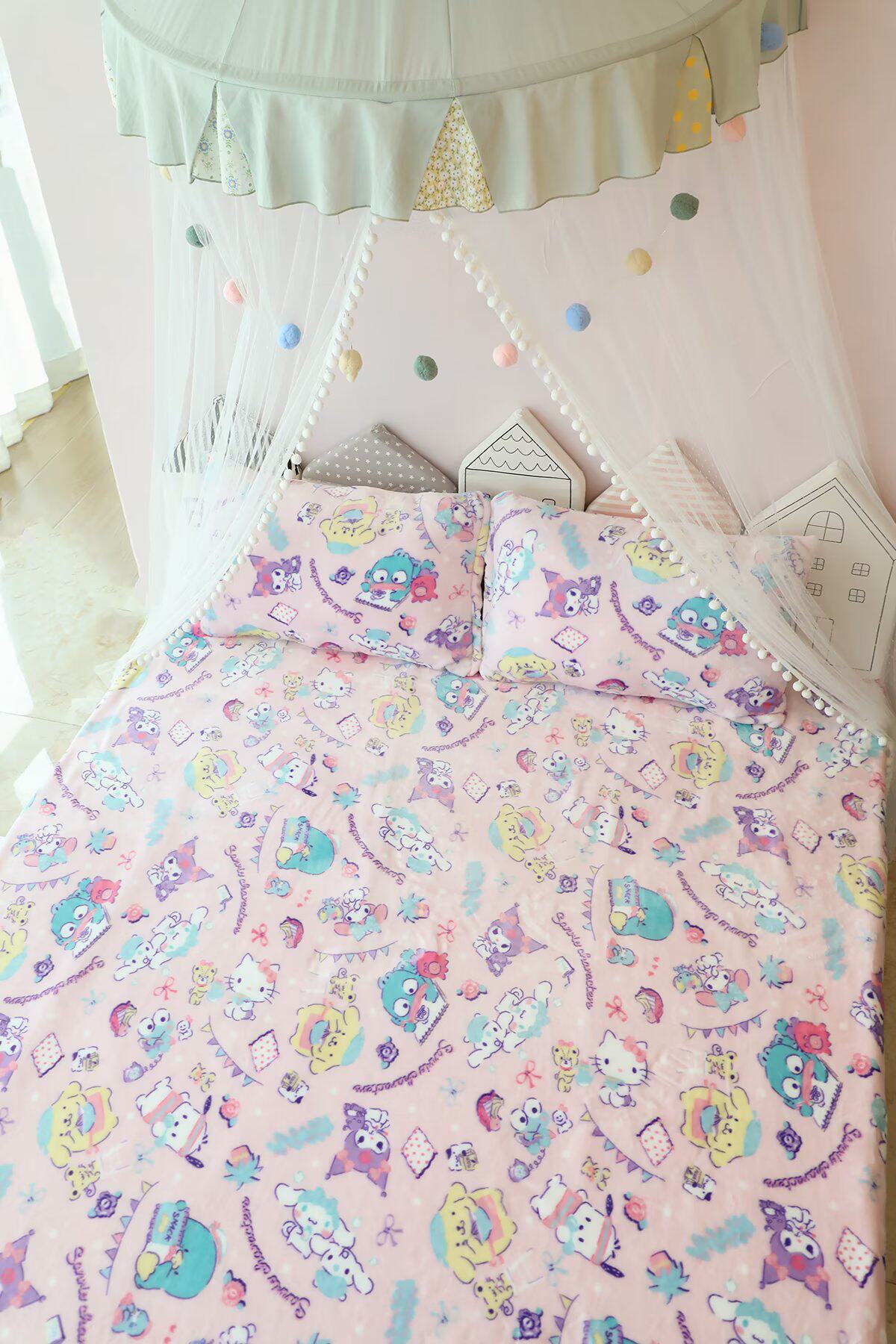 手感很软很柔~~法兰绒的~~毯子有延伸性,包边没那么平整~~介意勿拍