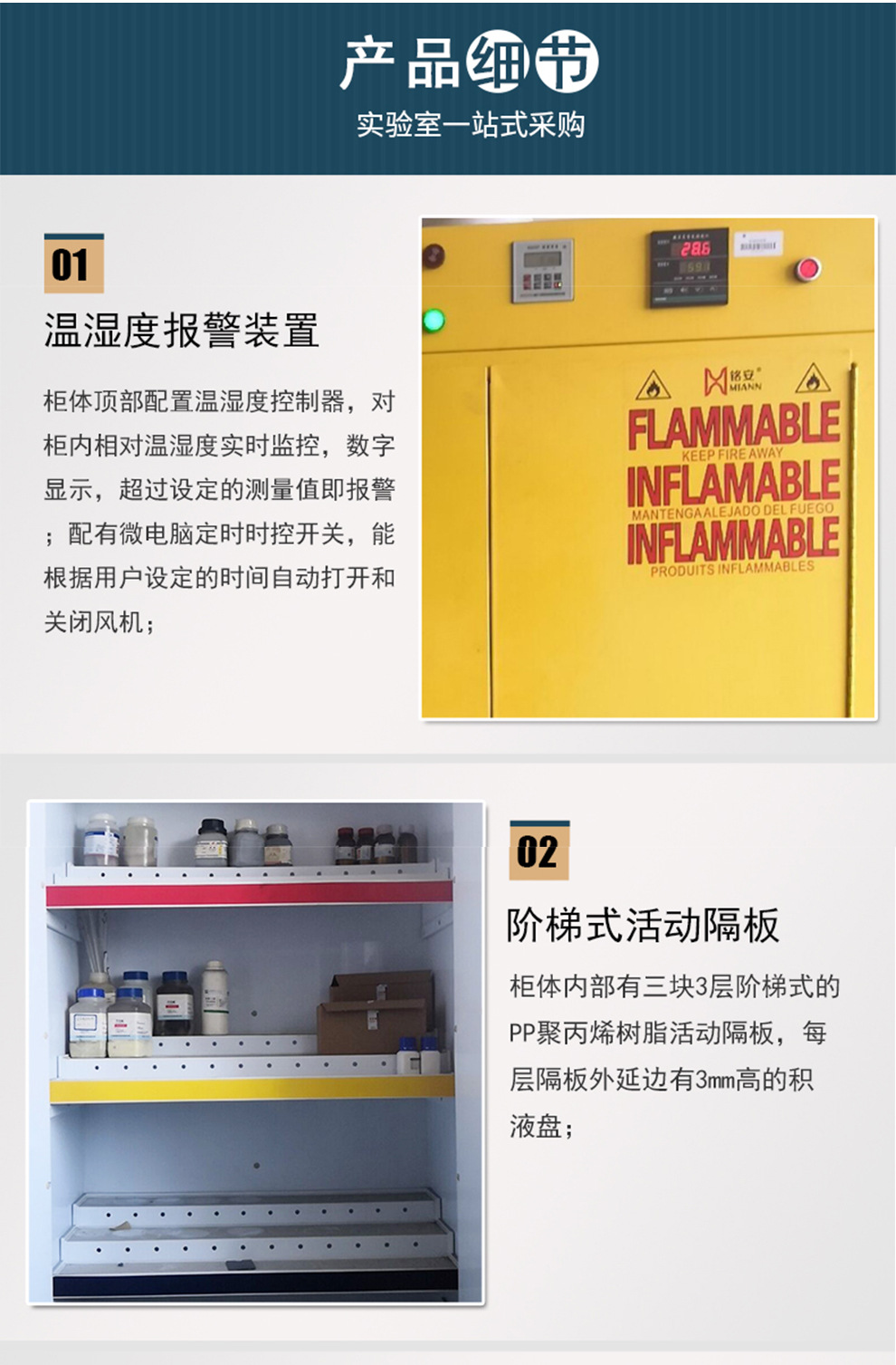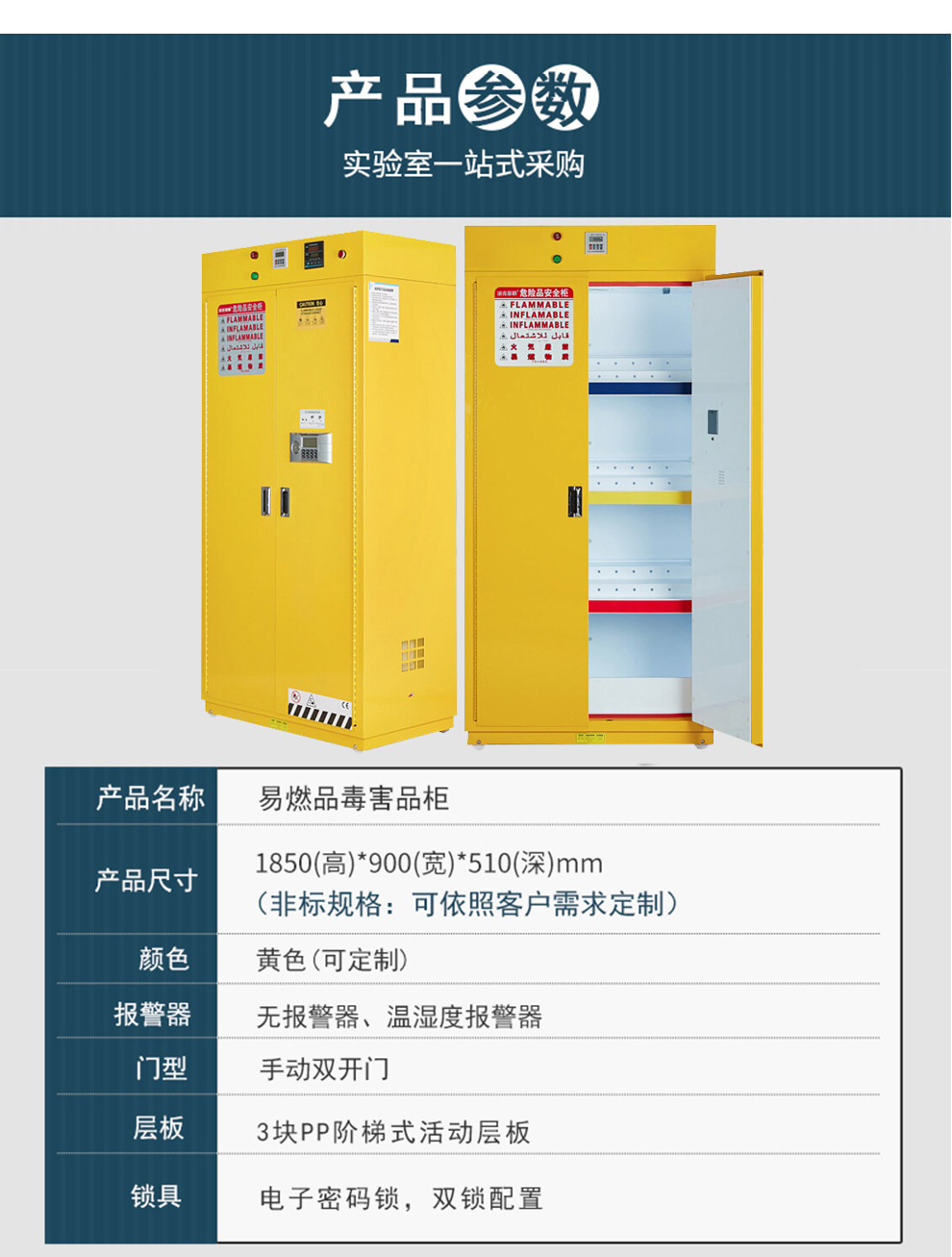 Yongge 위험물 의약품 캐비닛 가연성 독성 제품 보관 캐비닛 실험실 온도 및 습도 경보 캐비닛 화재 및 폭발 방지
