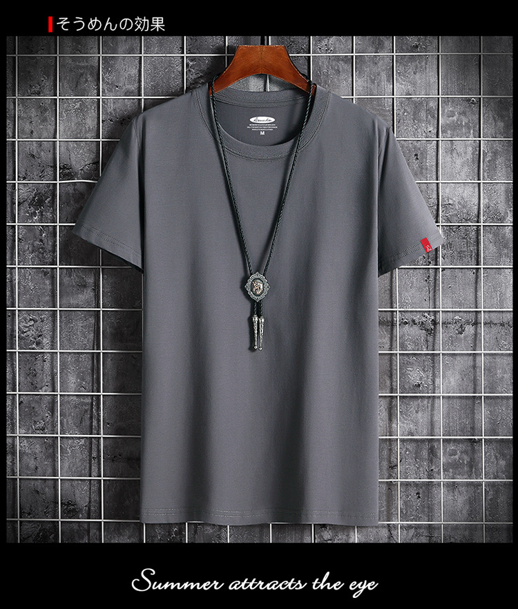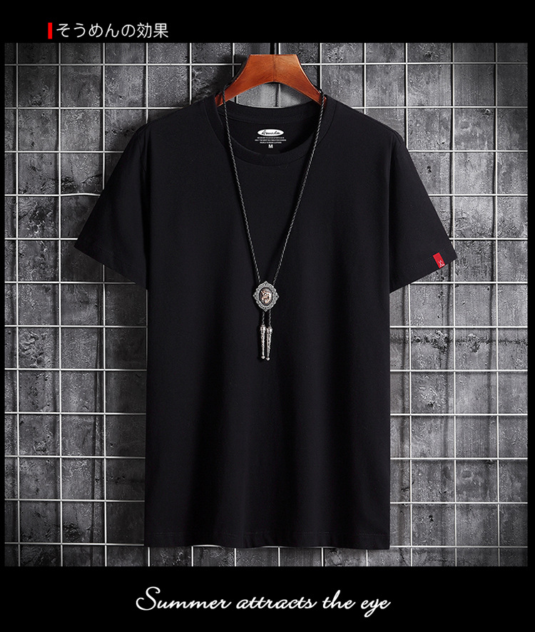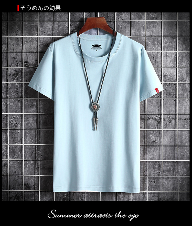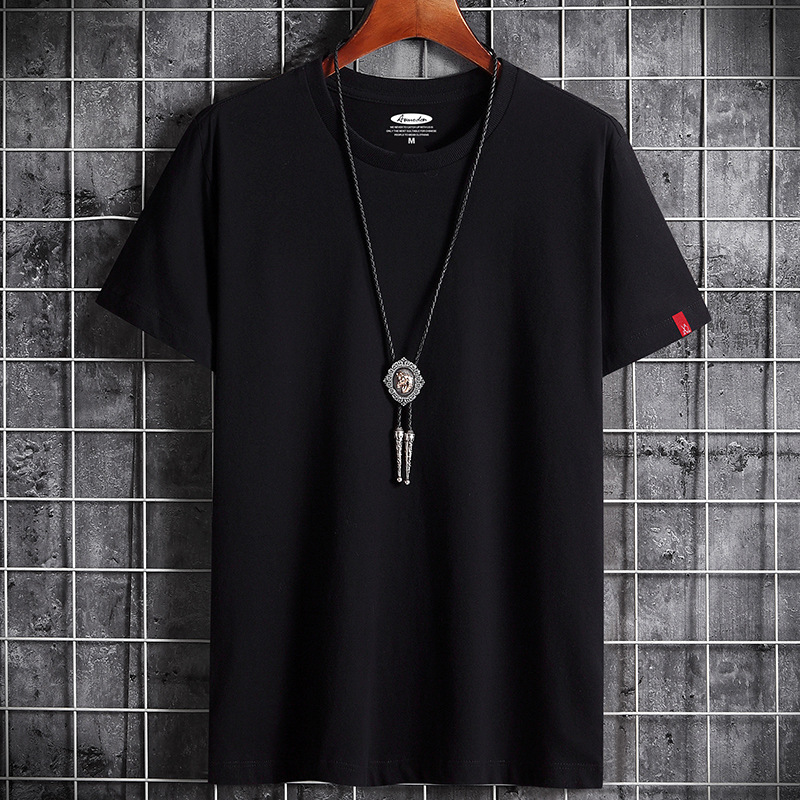 반팔 티셔츠 남자 여름 새 라운드 넥 코튼 루즈 플러스 사이즈 남자 솔리드 컬러 탑베이스 하프 슬리브