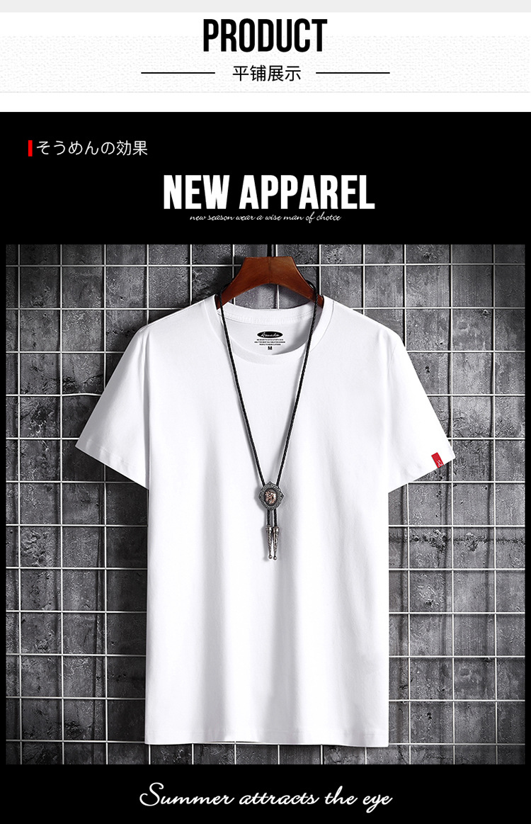 반팔 티셔츠 남자 여름 새 라운드 넥 코튼 루즈 플러스 사이즈 남자 솔리드 컬러 탑베이스 하프 슬리브스토어 가기