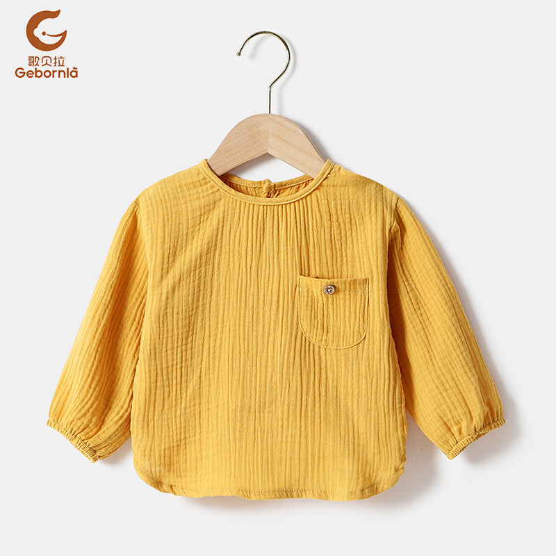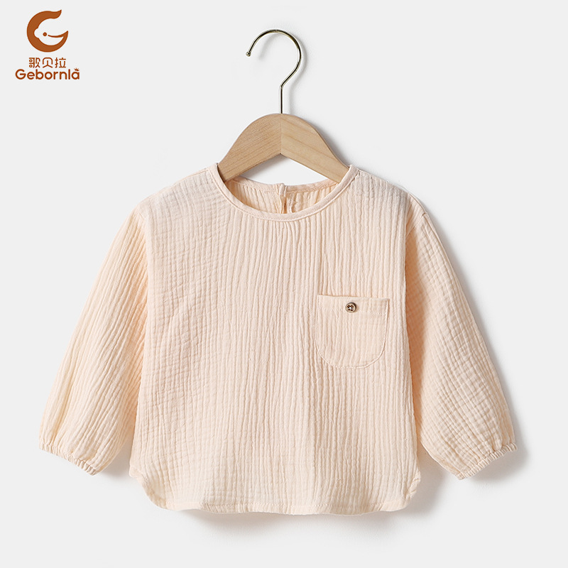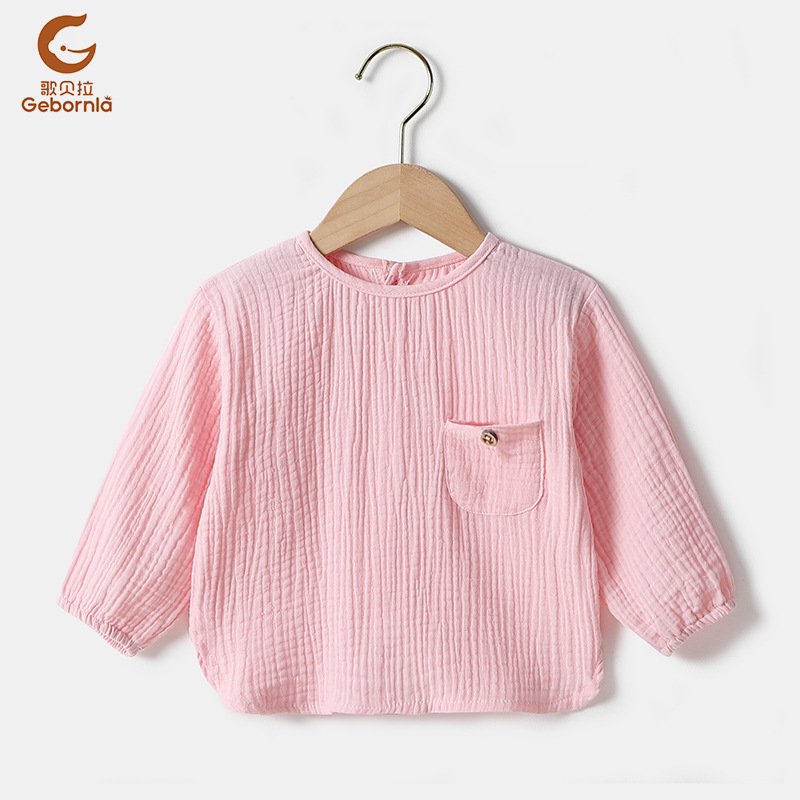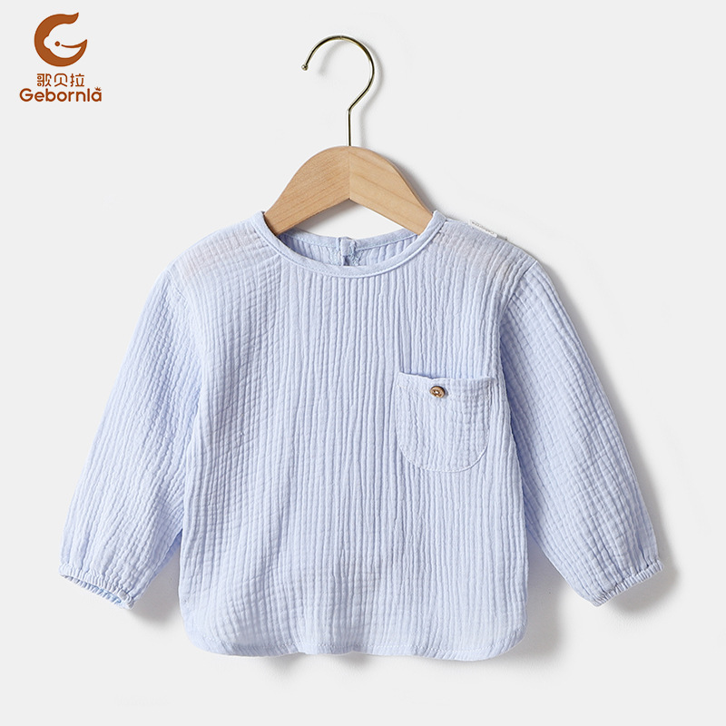 【文案】新款纱布长T恤,两层轻薄纱布,柔软清透,独特的反穿设计,清爽利落,材质手感棉柔。80-120码,适合0.5-5岁左右的宝宝。裤子可搭配货号4540undefined