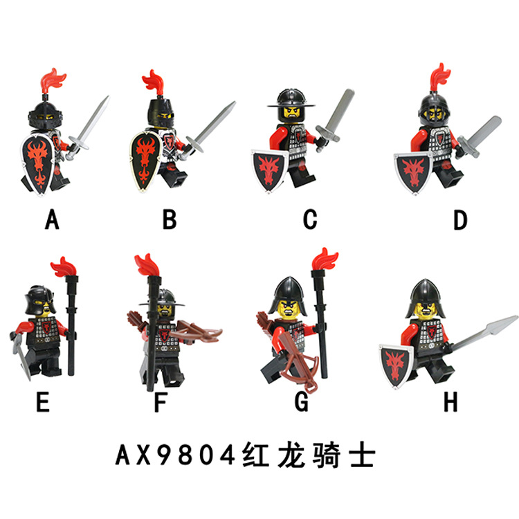 LOJO AX9804 레드 드래곤 나이트 미들 나이트 시리즈 빌딩 블록 사람들 퍼즐 조립 빌딩 블록 대외 무역 뜨거운 판매
