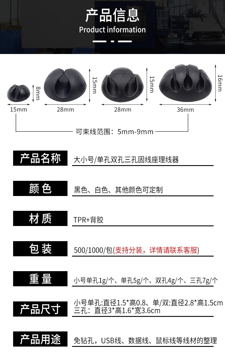• 작은 단일 구멍 검정색(강력한 흰색 접착제)