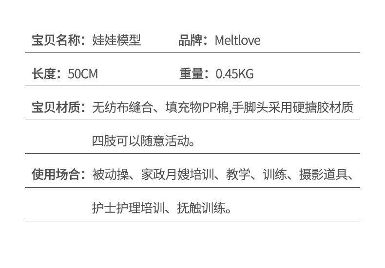 适合月嫂、育婴师、家政等培训,适合表演道具等。